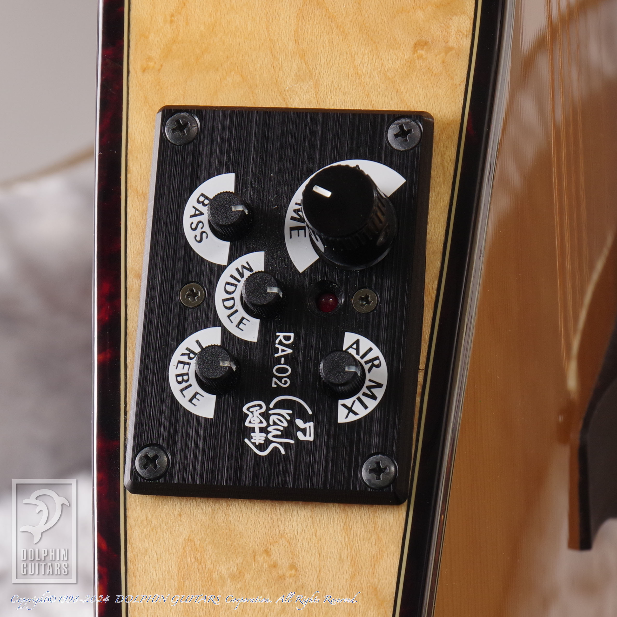搭載されたPUシステムは使い勝手の良い3バンドEQを内蔵、さらにコンデンサーマイクも搭載されており、手元での操作で直感的な音作りも容易に行えます。