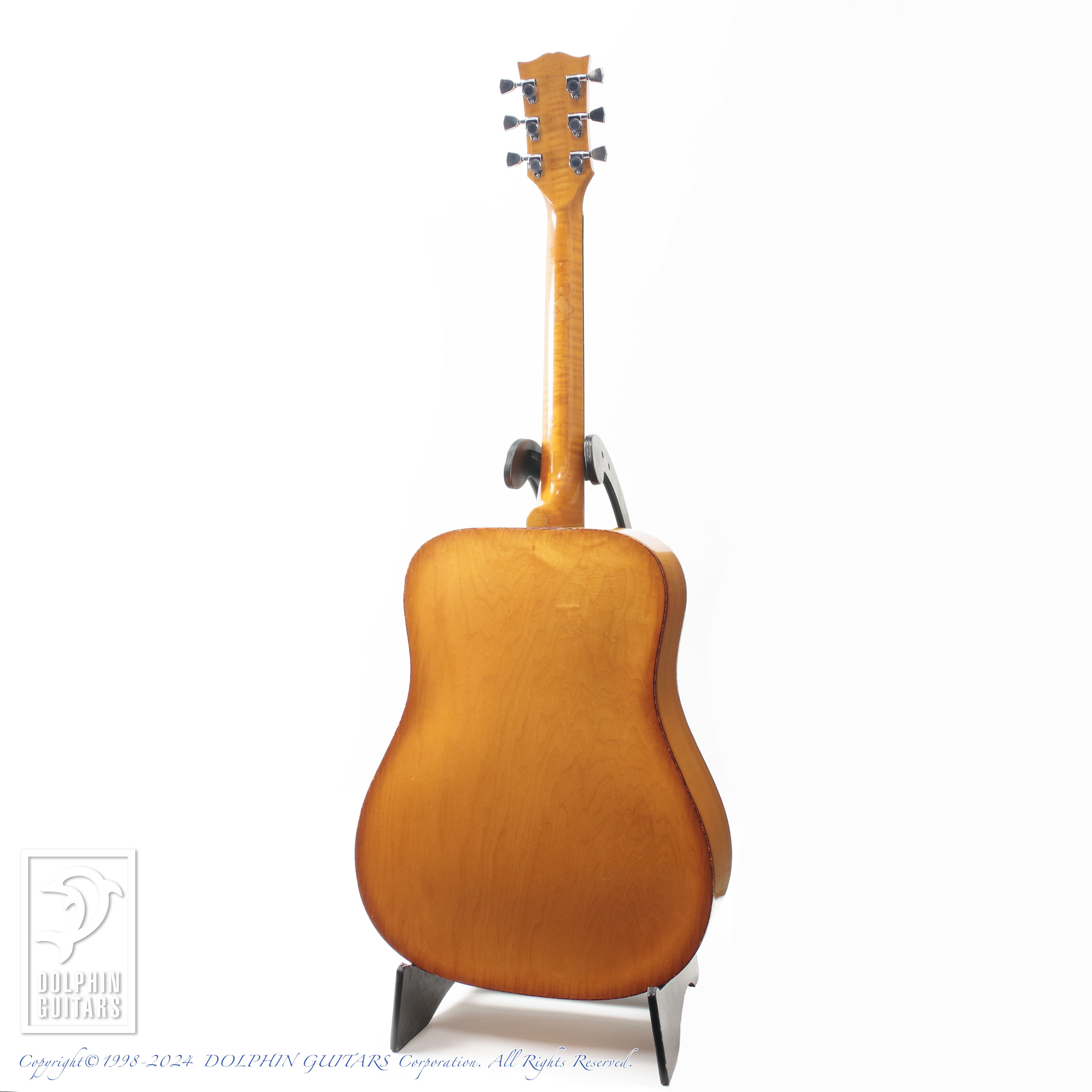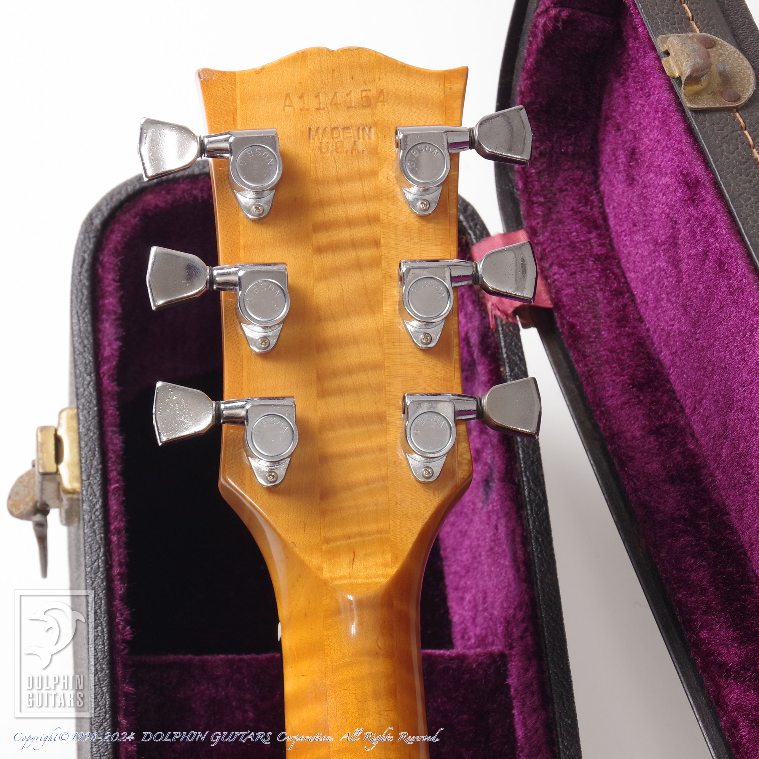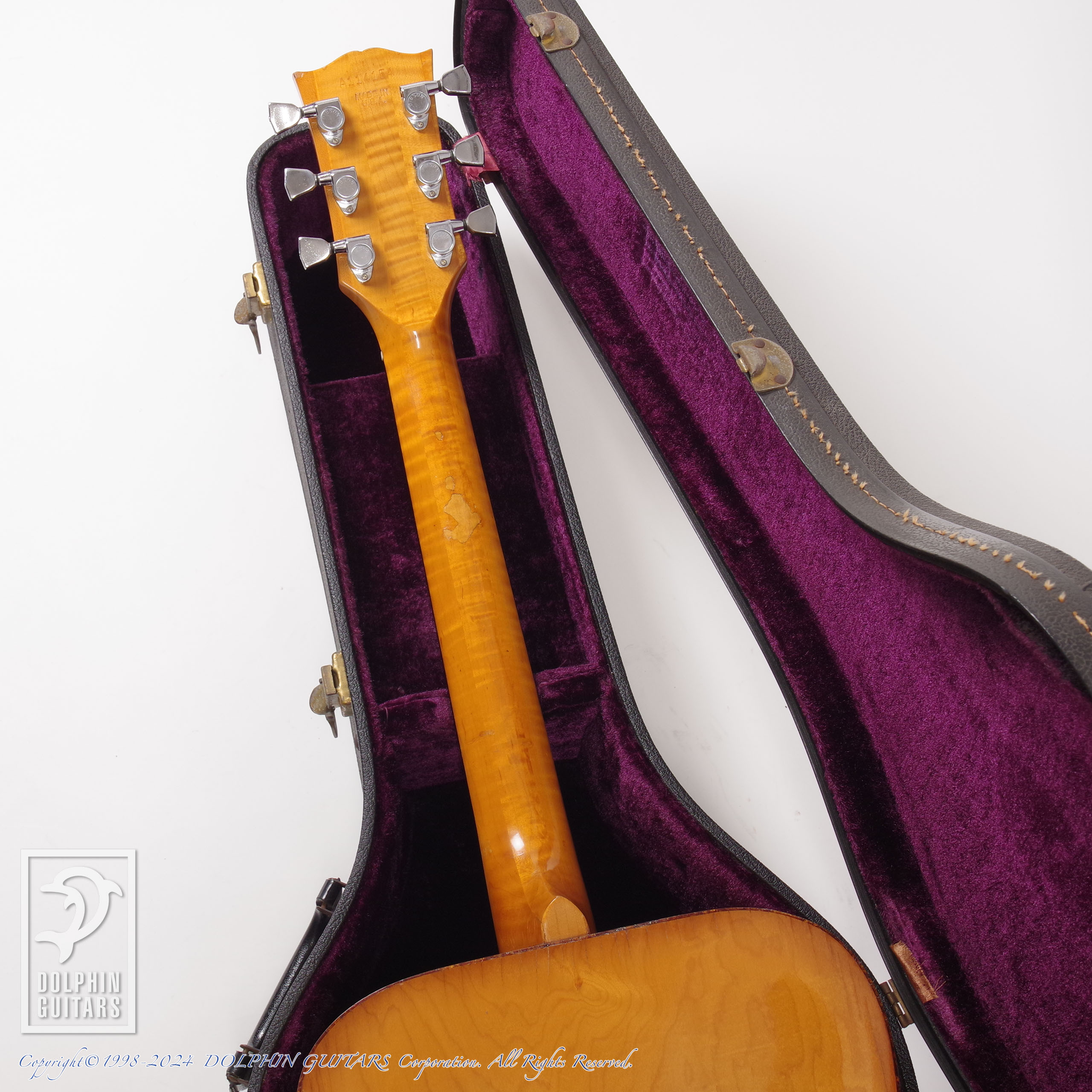 70年代ギブソンに見られるメイプル5ピースネックやスクエアショルダー、ダブルXブレイシングといった特徴に加え、アーチバック仕様という珍しいスペックのモデル。