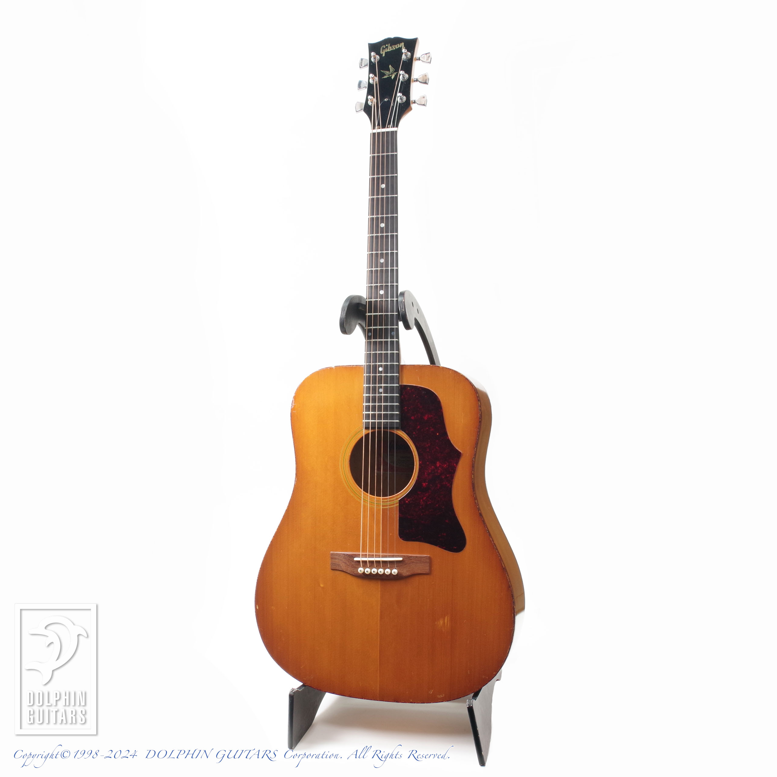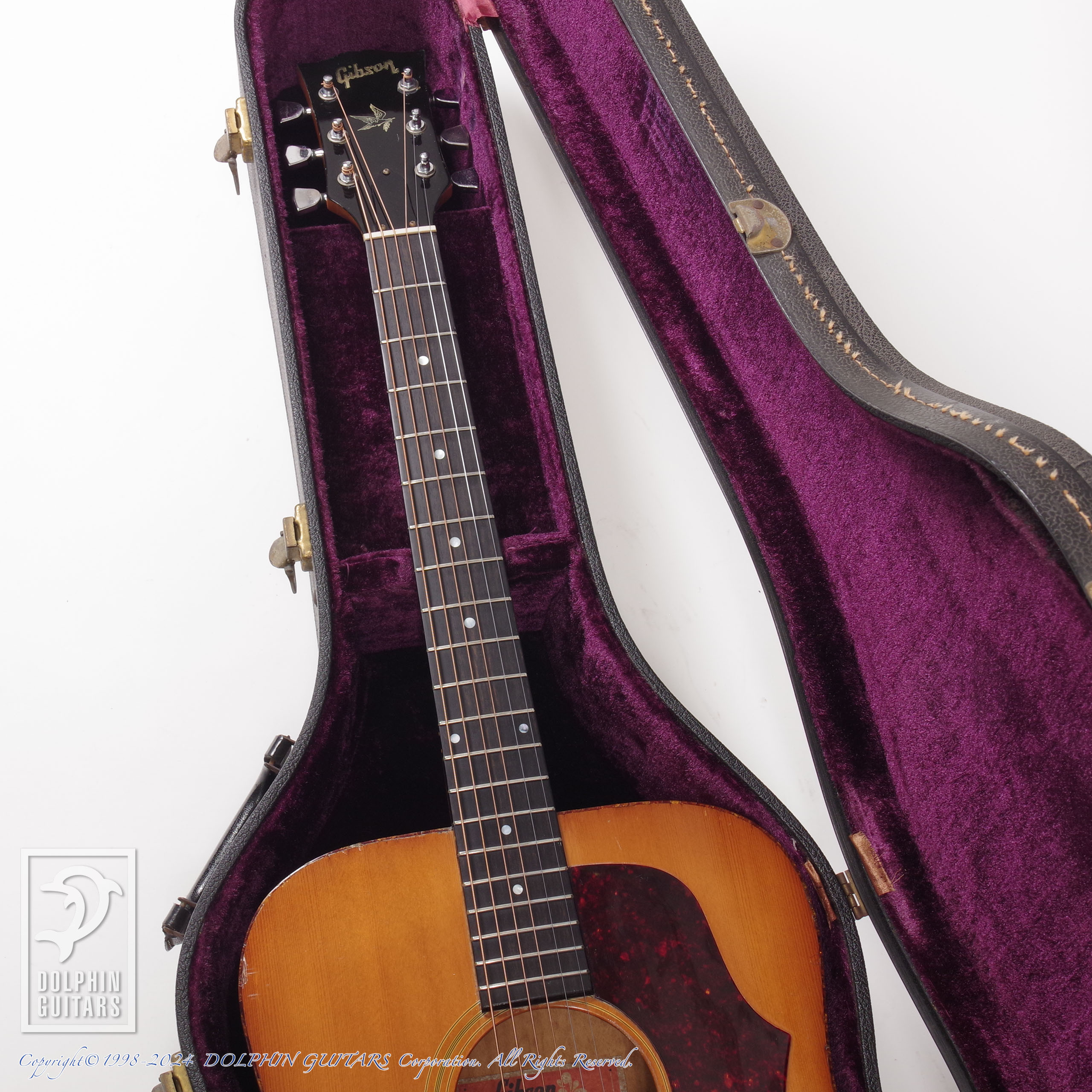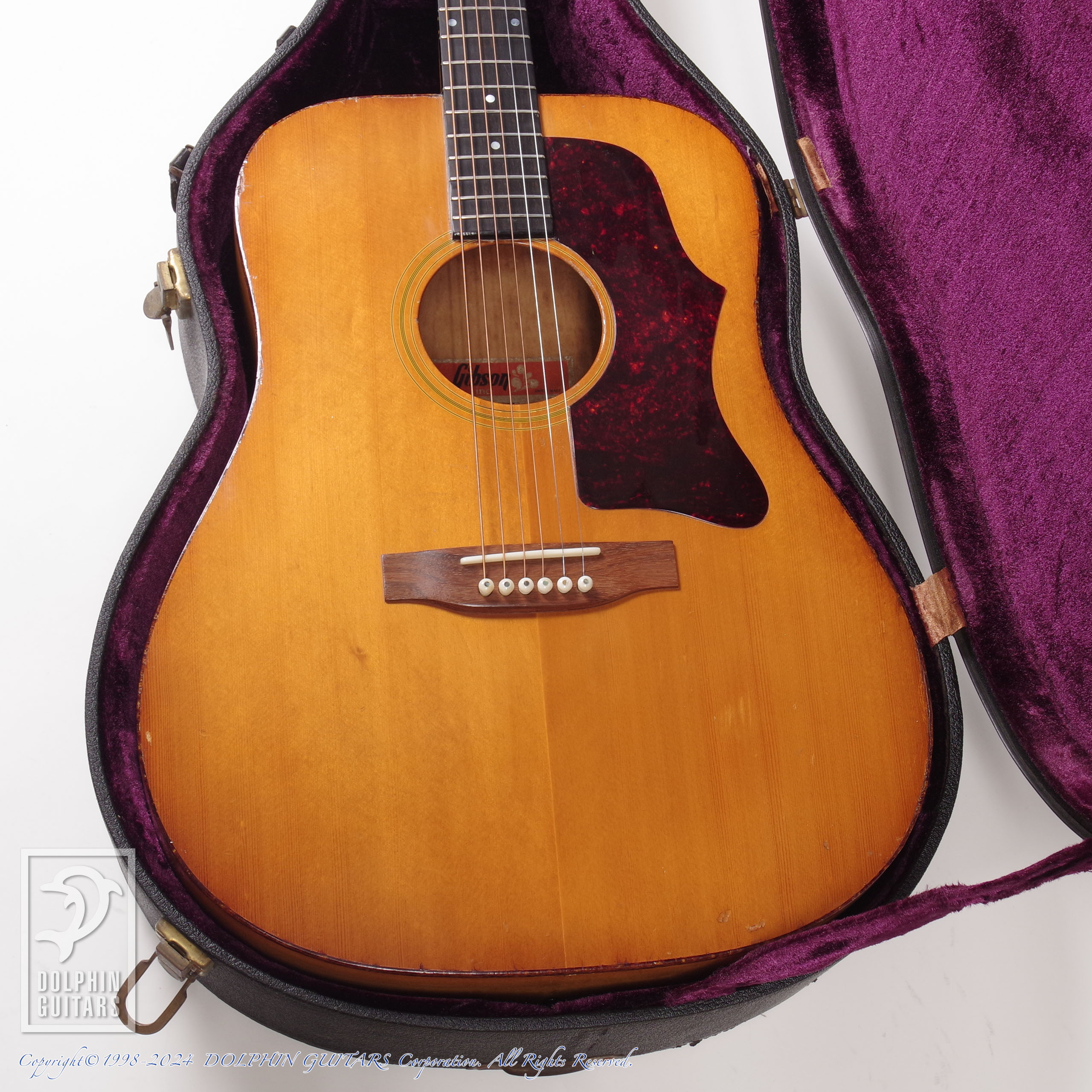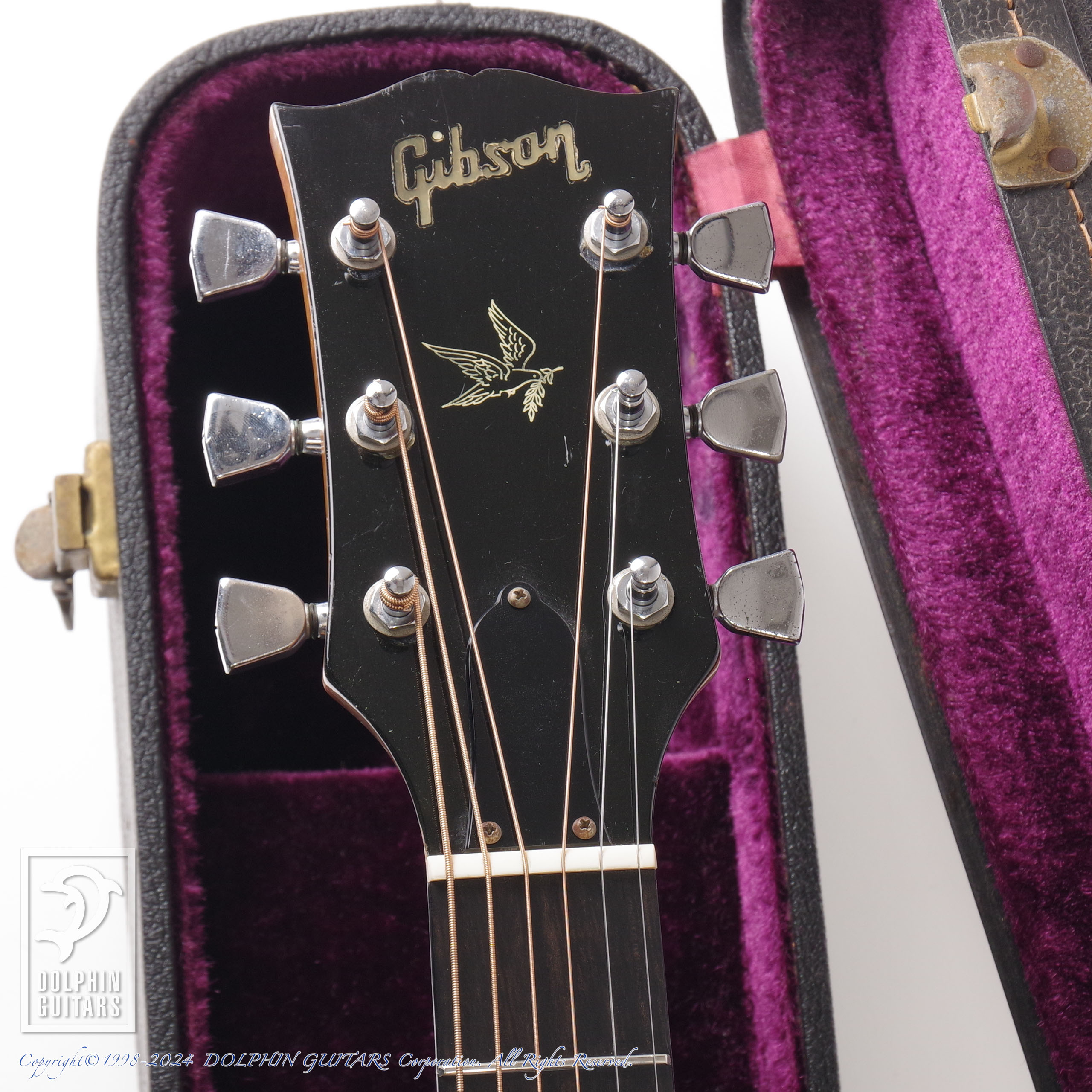 70年代ギブソンに見られるメイプル5ピースネックやスクエアショルダー、ダブルXブレイシングといった特徴に加え、アーチバック仕様という珍しいスペックのモデル。