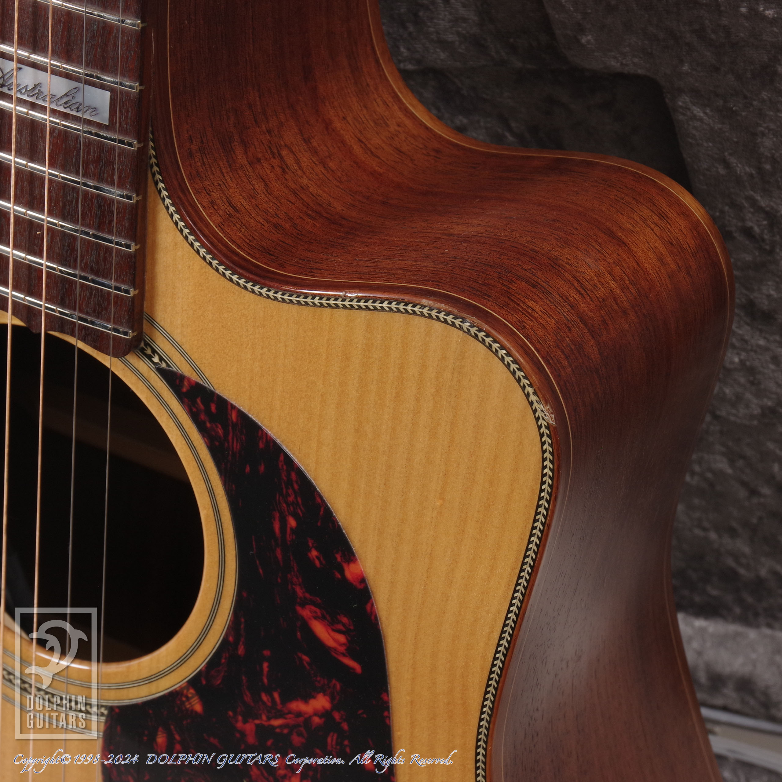 ブンヤはトップ材としても非常に優れた音響特性を持ち、オーストラリアン ブラックウッドボディと組み合わせ素晴らしいサウンドを生み出します。トップはグロスフィニッシュなのに対し、ボディやネックはサテンフィニッシュ(つや消し)となっており、ルックスのみならずこれらもすべてがサウンドとなって現れております。