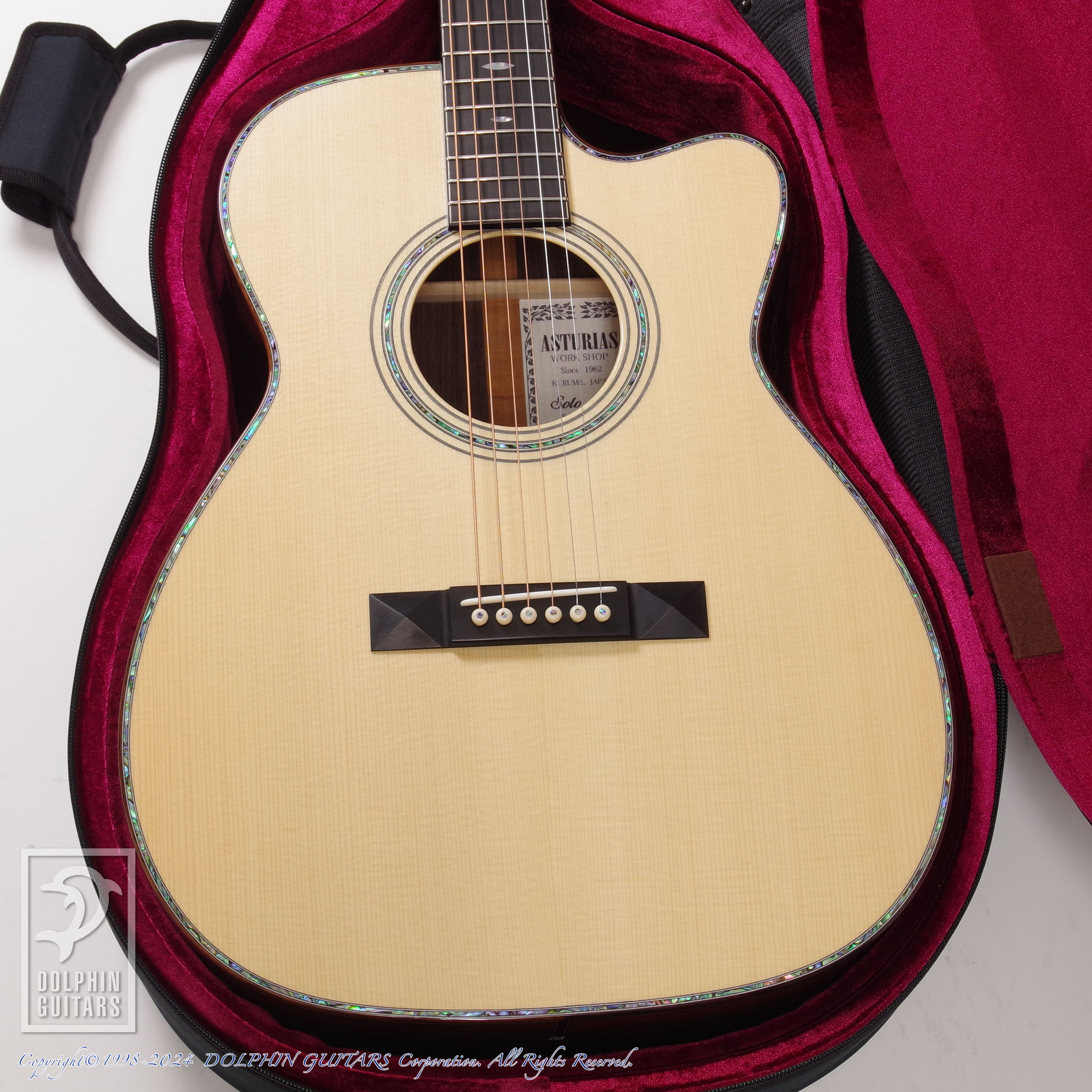 本器はフィンガースタイルプレイヤーのために、アストリアスの職人達がその技術と情熱を注ぎ込んだモデルSolo Premium。それを厳選素材+ショートスケール特別仕様で操作性もさらに突き詰めたアップグレード版カスタムモデル、Solo Premium Custom。【限定3本】=ドルフィンギターズ特注モデル=