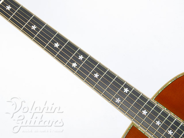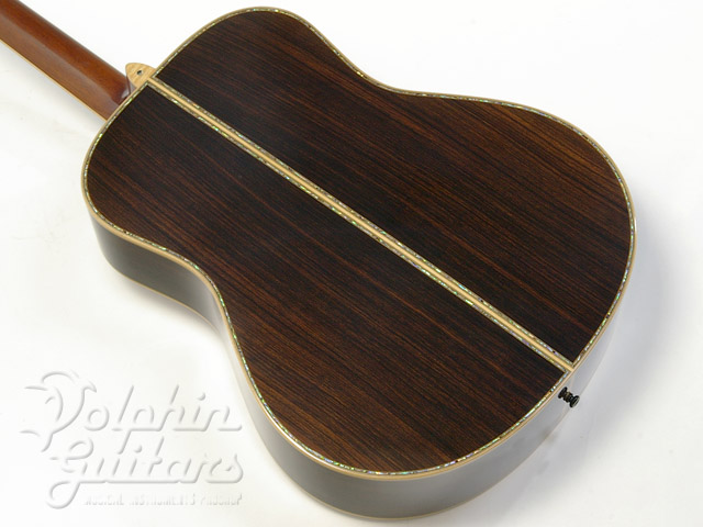 エゾマツ・トップ、インディアンローズウッド・サイド&バック、アバロン・トップ、バック、ロゼッタ&ヘッドパーフリング、エボニー指板&駒。