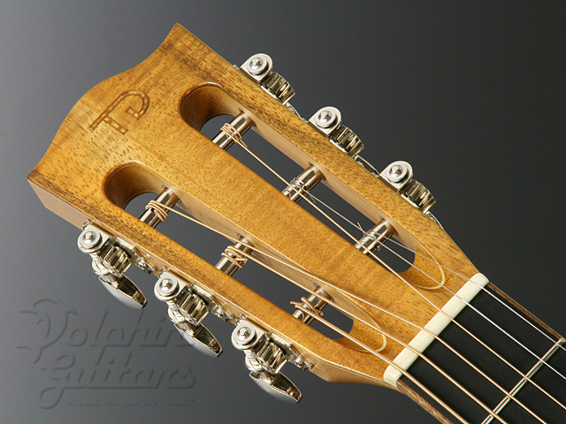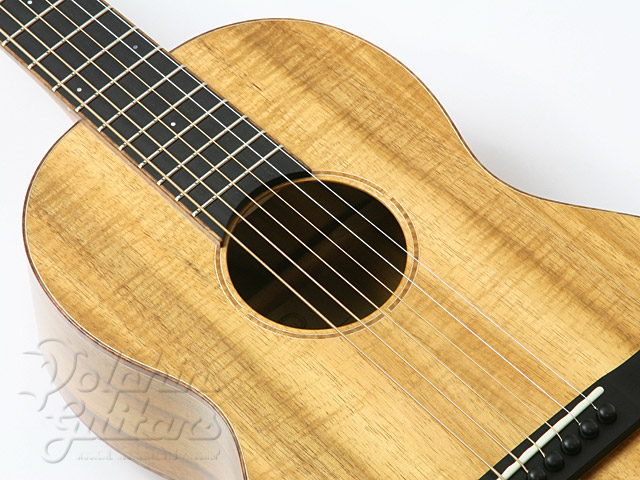ボディにフィギャードの入った2Aグレードのコアウッドを贅沢に使用、12フレット・ジョイント、カーリー・コアウッド・ボディー・バインディング、ホンジュラス・マホガニー・ネック(ノン・アジャスタブル/カーボン補強)、エボニー指板&駒、コアウッド・ロゼッタ、スロテッド・ヘッド、ロング・サドル、つや消しラッカー・フィニッシュ。