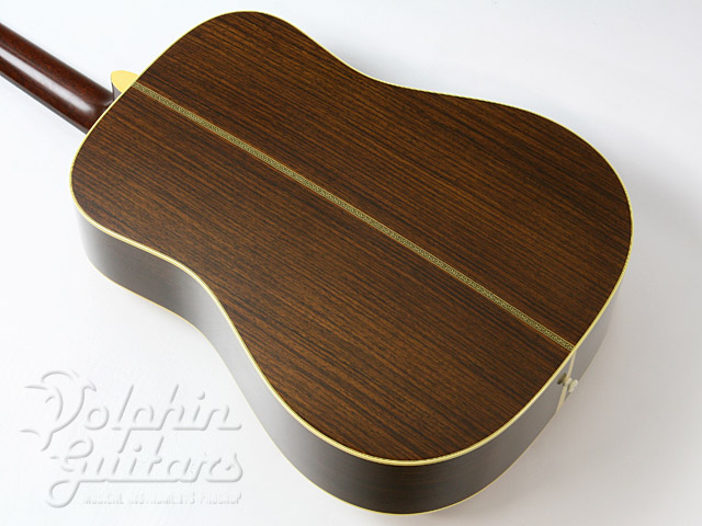 ”ドスン”とネックにまで振動が伝わってきそうな低音域、しっかりとコシのある高音域、全体的にパワー感あるサウンドは、極上のインディアンローズウッドボディとノンスキャロップブレイシングの為せる技でしょう。