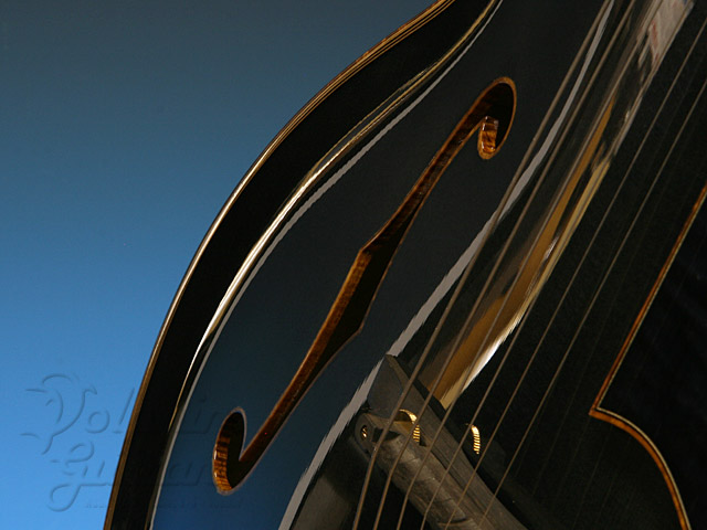 カスタマイズされたL-5タイプテールピース、ボディとマッチングしたメイプル・ピックガードなど、ハイセンスなカスタムです。
