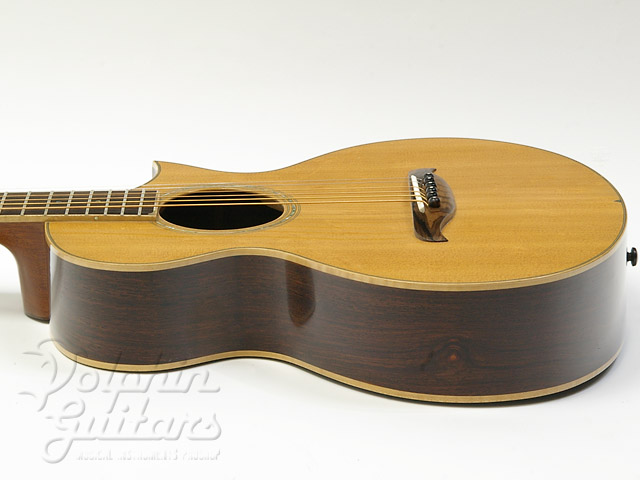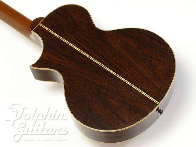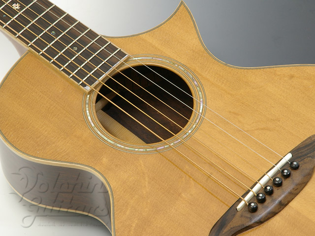 ベアクロウ・シトカスプルース・トップ、ローズウッド・サイド&バック、ベネチアンカッタウェイ、マホガニー・ネック、エボニ指板&駒、ゴトー糸巻き、ウッドバインディング仕様。