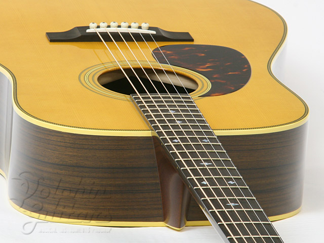 スプルース・トップ、ローズウッド・サイド&バック、アフリカン・マホガニー1ピースネック、エボニー指板&駒、スノーフレークス指板インレイ、ウッドバインディング。
