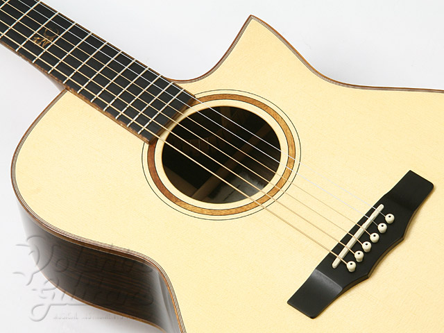 ジャーマン・スプルース・トップ、インディアン・ローズウッド・サイド&バック、エボニー指板&駒、オリジナルカッタウェイ。