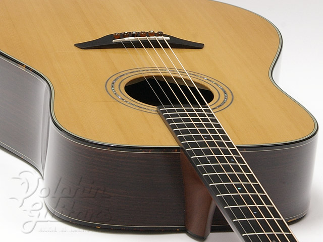 シダー・トップ、ローズウッド・サイド&バック、マホガニー・ネック、ナット幅は45mm、やや薄めのUシェイプと現在フィンガーピッカー系で主流のネック形状です。