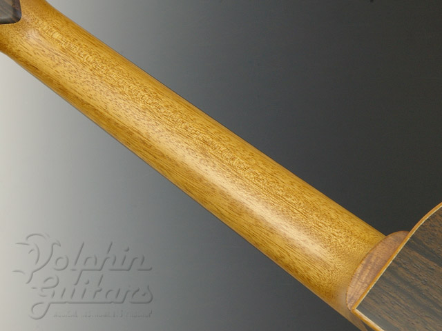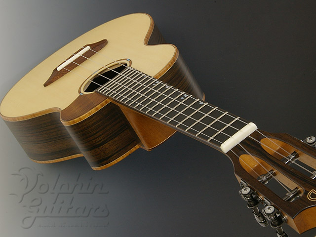 トップには木目の詰まったイングルマン・スプルース、サイド&バックには美しいマレーシアン・ブラックウッドを使用し、ホンデュラスマホガニー1pネック、エボニー指板、マダガスカルローズ駒、スロッテッド・ヘッドシェイプに、ピックガードはコア材を使用。