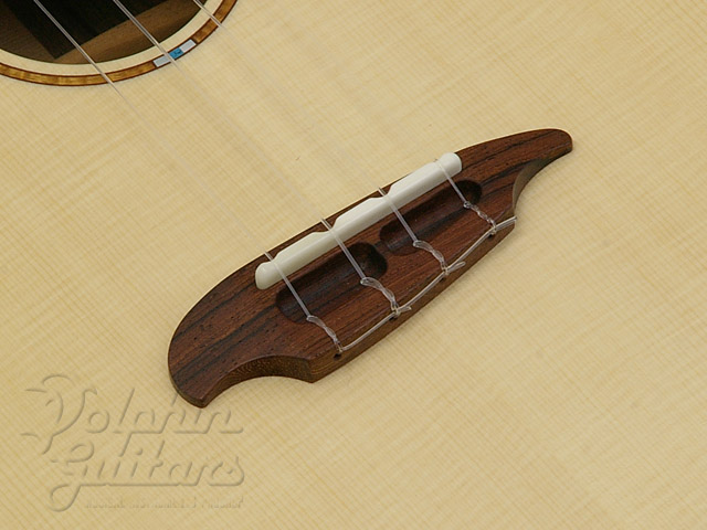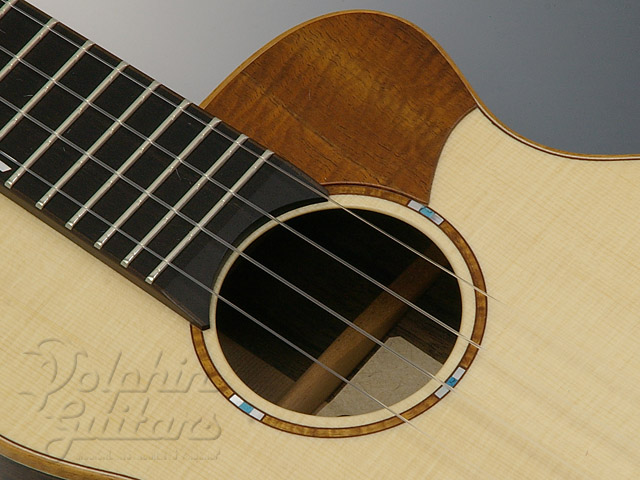 イングルマン・スプルースの粒立ちの良さ、マレーシアン・ブラックウッドの特徴とも言える厚みのある中低域、エボニー指板&マダガスカルローズ駒を組み合わせることでよりギュッと濃縮されたサウンド、やわからさも持ちながらも、音像はくっきりと鮮やかなサウンドが魅力。
