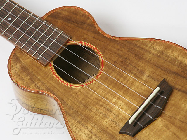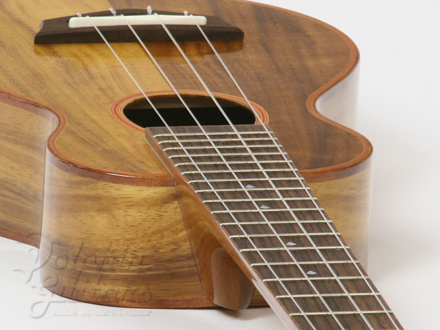 ハワイアン・コアウッド・ボディ(AA)、ローズウッド指板&駒、ブビンガ・バインディング、ゴトー製ギアペグ。