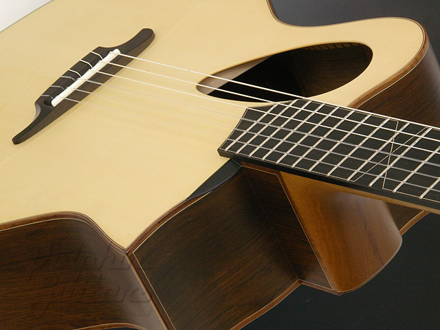 イングルマンスプルーストップ、マダガスカルローズウッドサイド&バック、ホンジュラスマホガニーネック、エボニー指板&駒、象牙ナット&サドル。