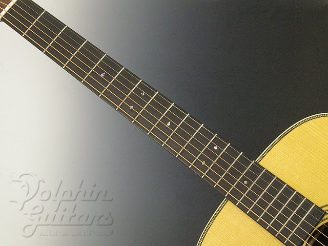 アディロンダックスプルーストップ、インディアンローズッドサイド&バック、フォワードシフテッドスキャロップドXブレーシング、42,9mmナット幅、アイヴォロイド・バインディング、ダイアモンド&スクエアインレイエボニー指板&駒、べっ甲模様のピックガード、ロングサドル、ラウンドシェイプネック、アジャスタブルロッド仕様。