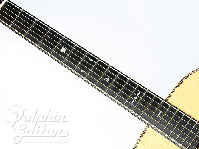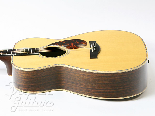 イングルマン・スプルース・トップ、インディアン・ローズウッド・サイド&バック、エボニー指板&駒、鼈甲柄ピックガード、ヘリンボーンボディートリム&ロゼッタw/レッドライン。