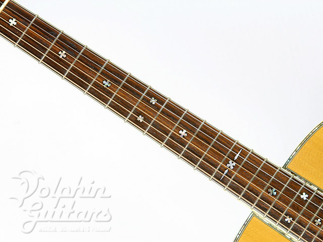 最高級スプルース・トップ、高級パリサンドル・サイド&バック、マホガニー・ネック、エボニー指板&駒、アバロン・ボディ・トリム、スノーフレークス・インレイ。