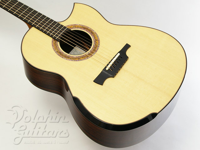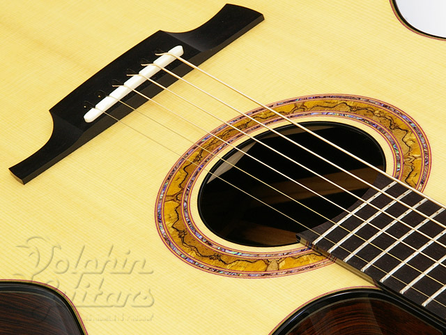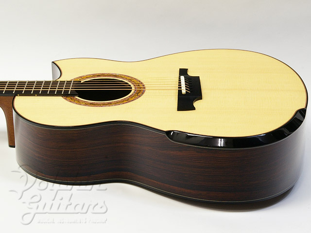 ヨーロピアン・スプルーストップ、プレミアムグレードハカランダ・サイド&バック(サイドはラミネート)、マホガニー・ネック(アジャスタブルロッド)、エボニー指板&駒、スポルテッドメイプル&アヴァロンロゼッタ、ゴトー糸巻き、エボニー・アームレスト&リブレスト仕様のモデルG2。