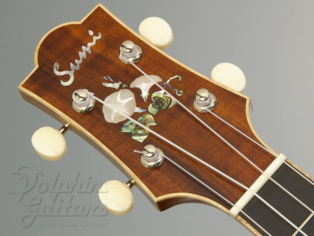 ヘッドと指板にあさがおのインレイを施したテナー・ウクレレ<古川忠義・デモ動画UP>