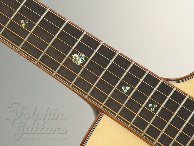 指板インレイには共通して三周年を示す、インレイ、12フレットには当店のトレードマーク、ドルフィンをあしらいました。