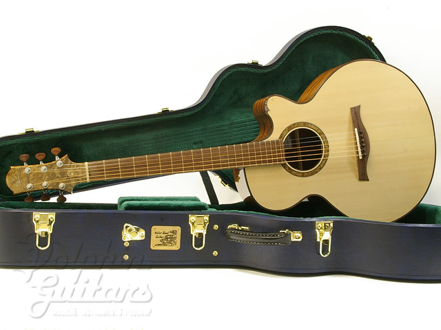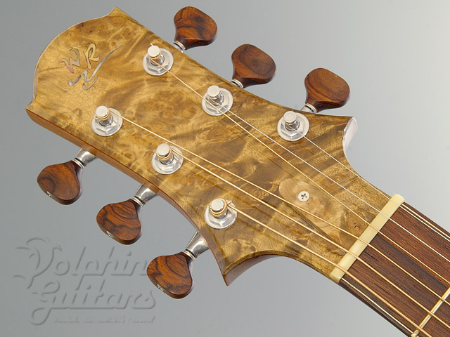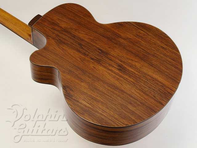ジャーマンスプルース・トップ(ムーンウッド)、サチャローズウッド・サイド&バック、ダブルXブレイス、マホガニーネック、マダガスカルローズ指板、アマゾンロース駒、ココボロ・バインディングゴトー糸巻き(ココボロボタン)、ホワイトバール・ウッドロゼッタ仕様。