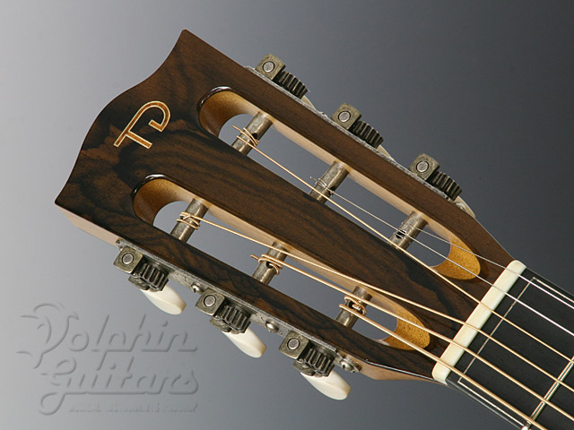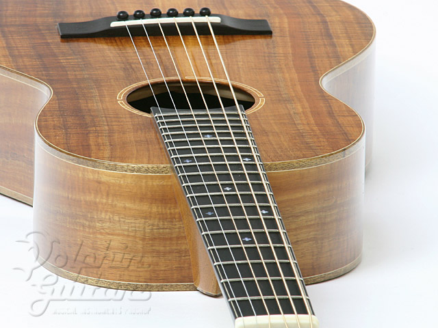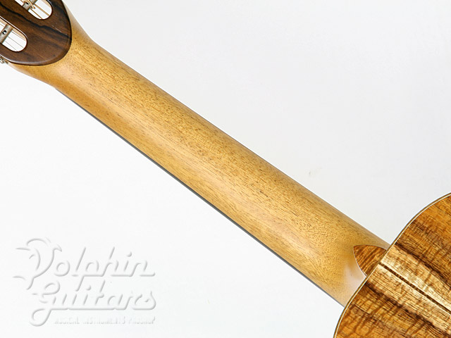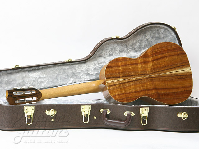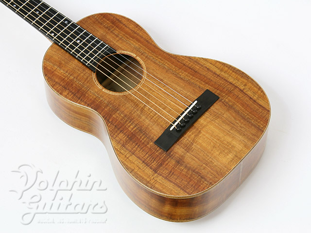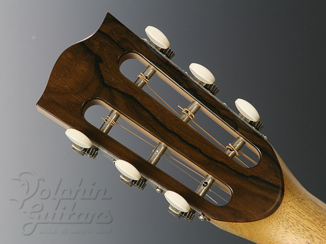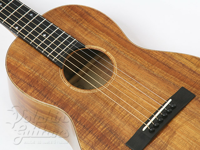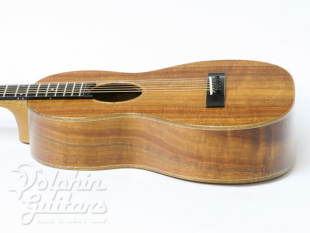 ボディに極上のコアウッドを贅沢に使用、12フレット・ジョイント、カーリー・コアウッド・ボディー・バインディング、ホンジュラス・マホガニー・ネック、エボニー指板&駒、コアウッド・ロゼッタ、スロテッド・ヘッド、ロング・サドル、つや消しラッカー・フィニッシュ。