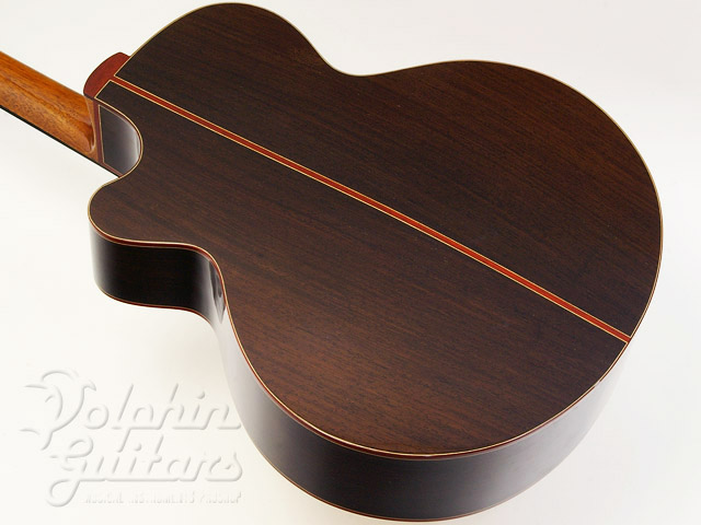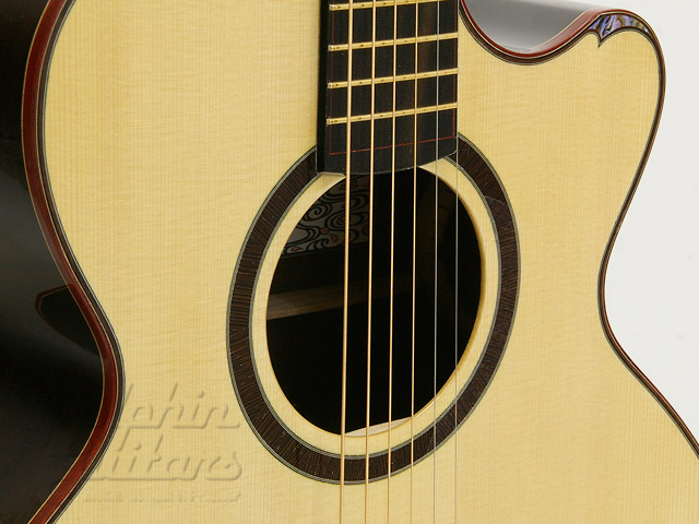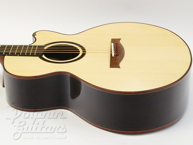 ジャーマンスプルーストップ、ウェンゲ・サイド&バック、カッタウェイ、ホンデュラスマホガニーネック、エボニー指板、マダガスカルローズ駒、ブラッドウッドバインディング、ゴトー510糸巻き。