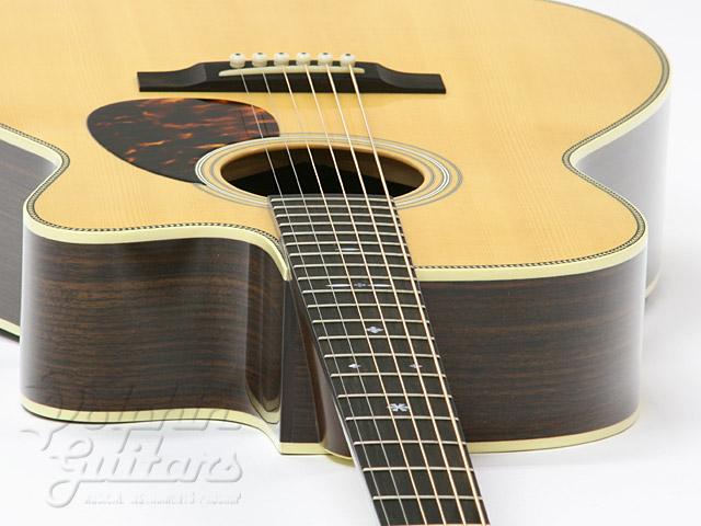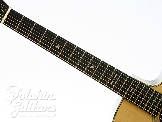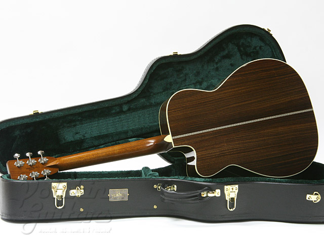 スプルース・トップ、インディアン・ローズウッド・サイド&バック、エボニー指板&駒、スノーフレークス&キャッツアイ指板インレイ。
