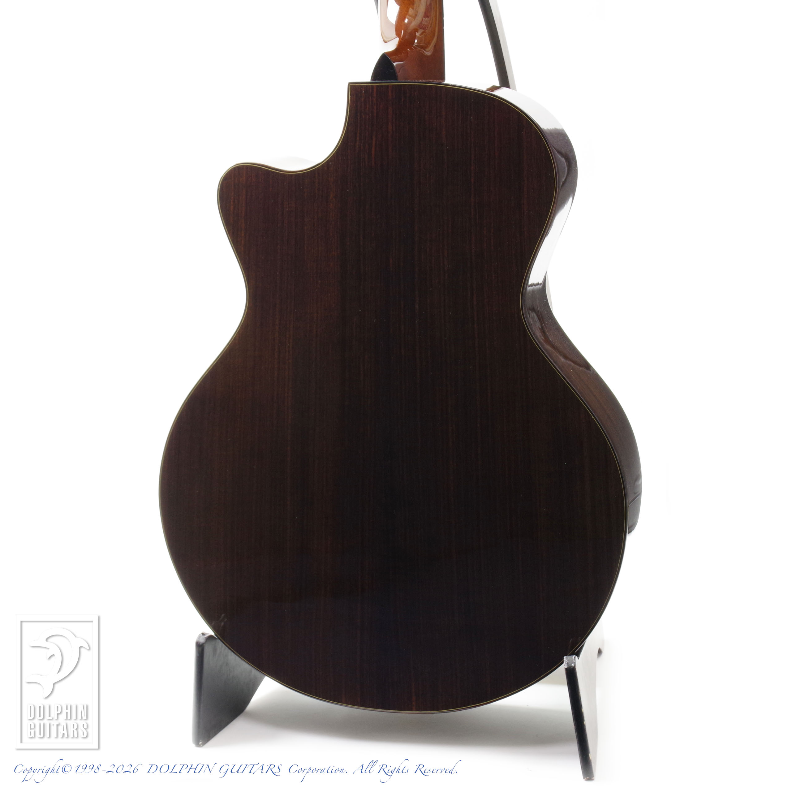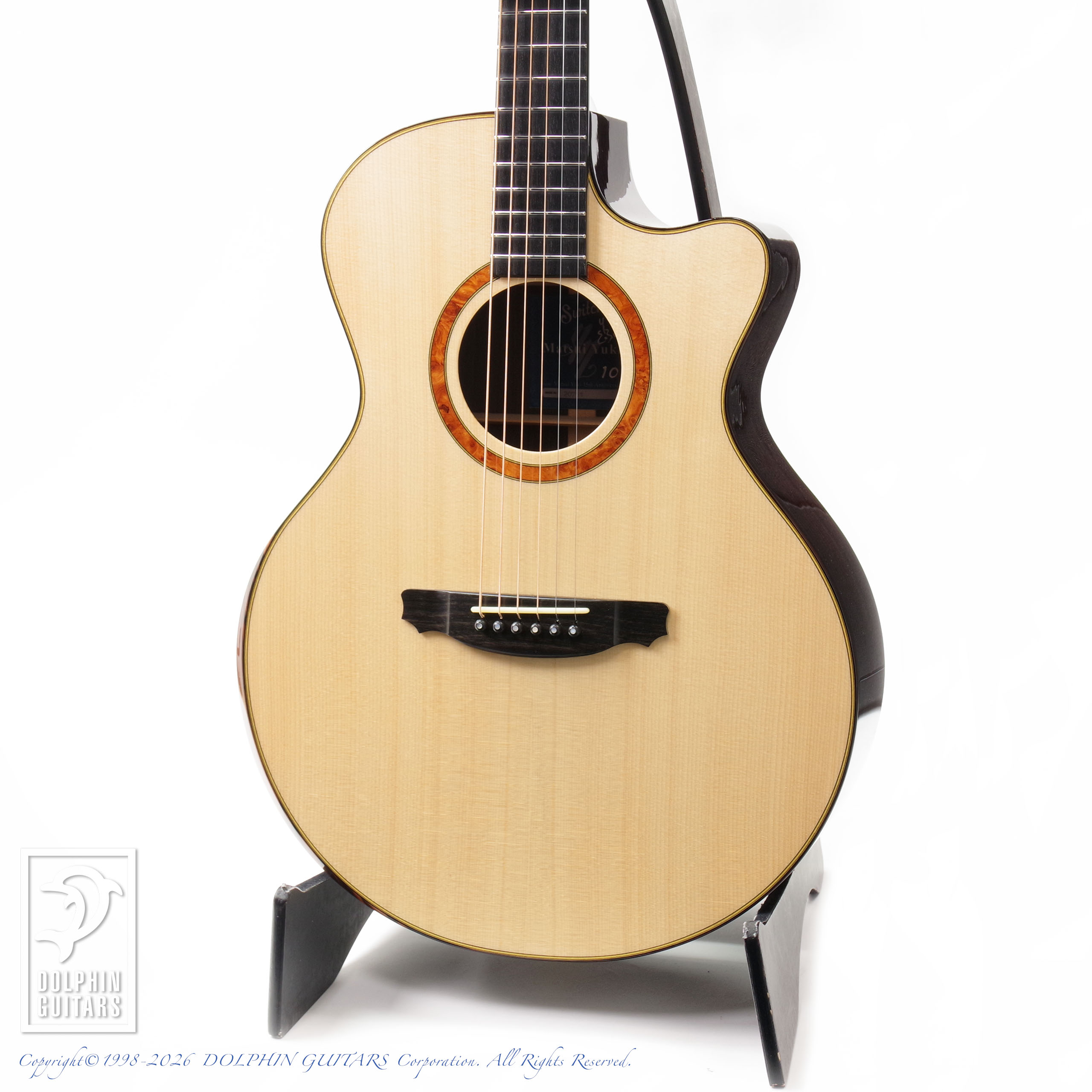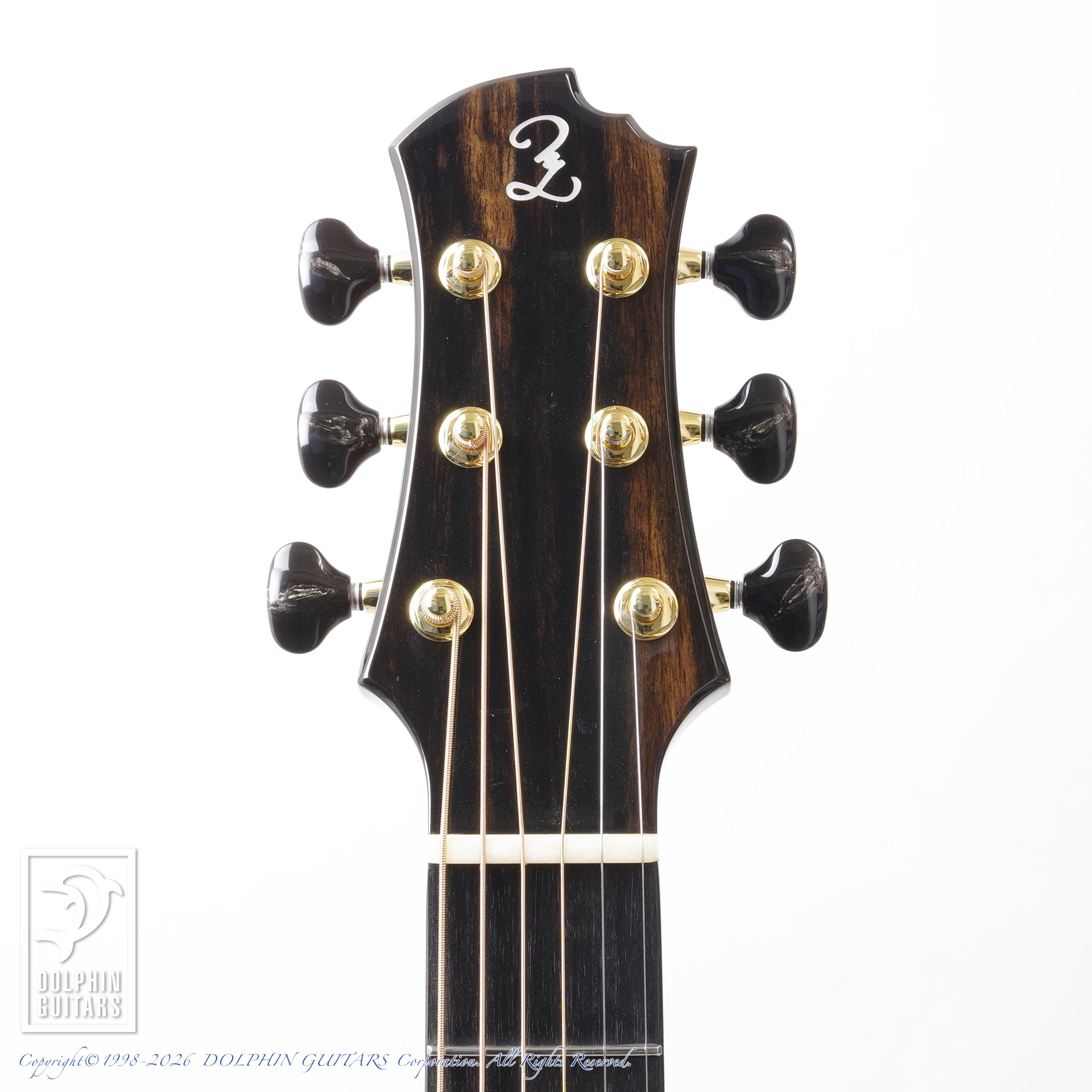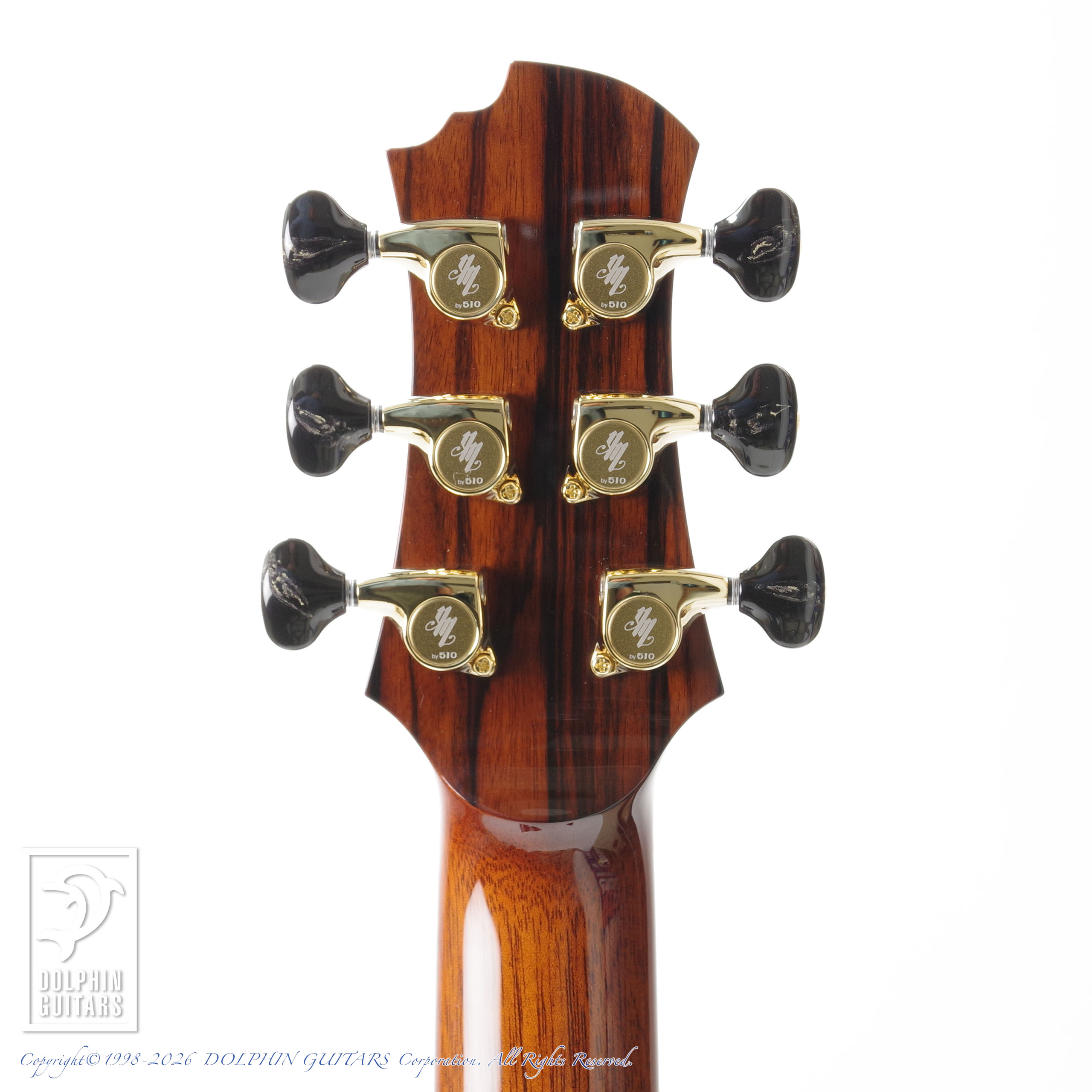 15周年という節目に特別なギターが欲しいという想いをカタチにしていただきました。使用材はインディアン・ローズウッド+ルッツ・スプルースとオーンドックスながらも、バック&サイドはできる限り薄いブラウン系でとこだわった選定をさせていただきました。ボディー・シェイプは前シグネチャーと同様ながら、ヘッド、ブリッジ形状は僕自身がデザインしたオリジナル・シェイプに変更してもらい、より特別なギターになりました。もちろんロゼッタやバインディングなど細かな装飾も全て僕が決めた特別仕様のシグネチャーモデルです。