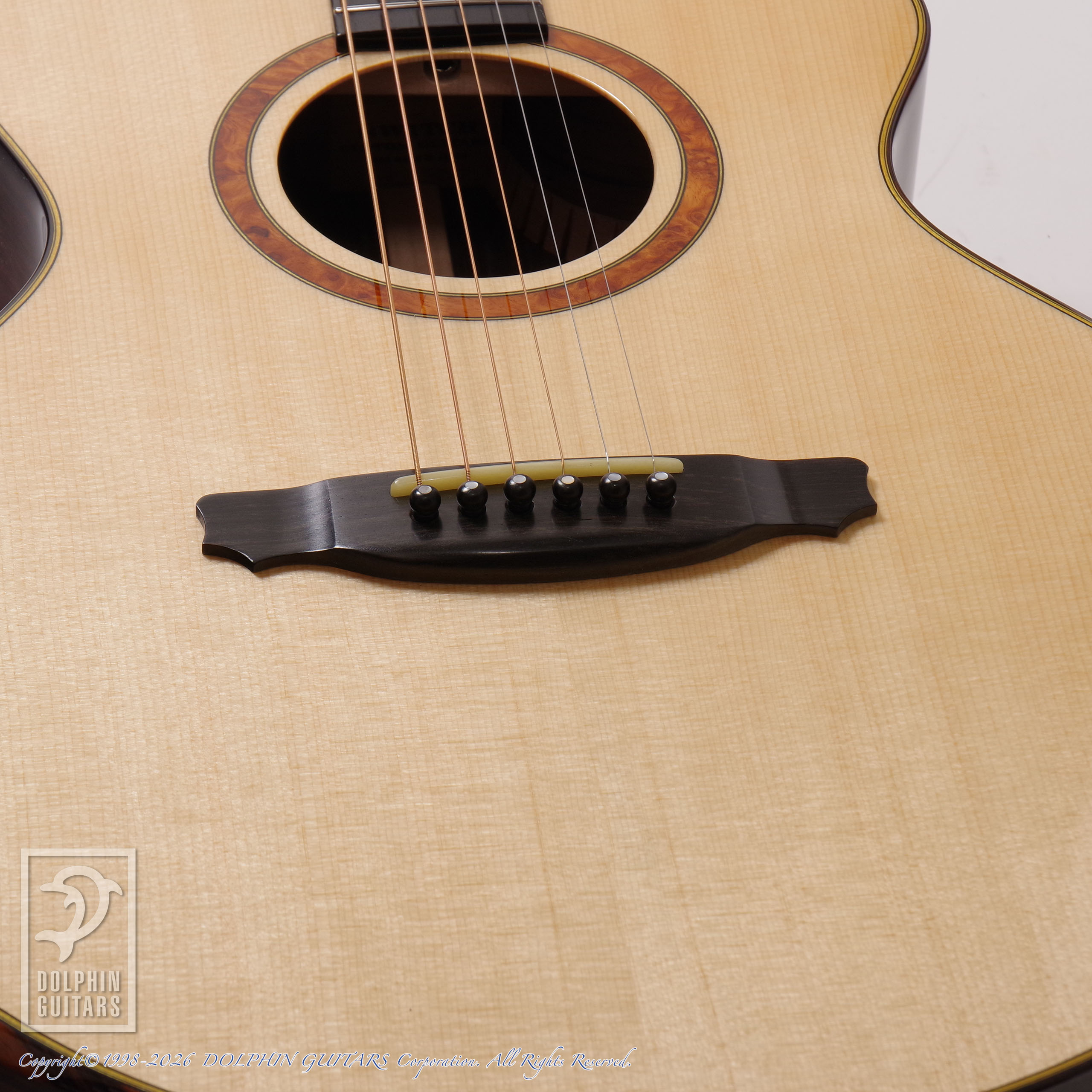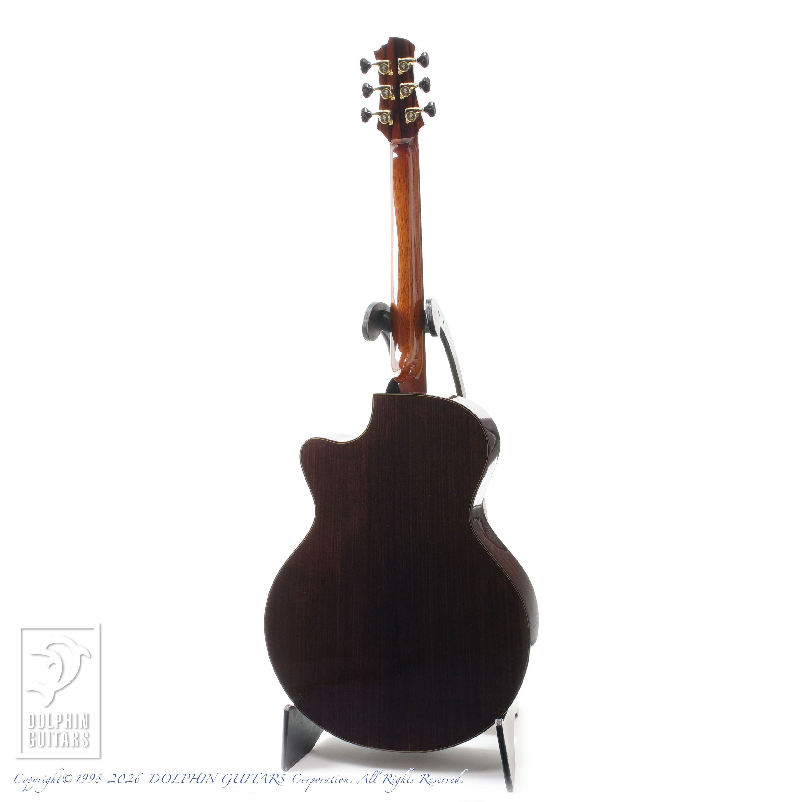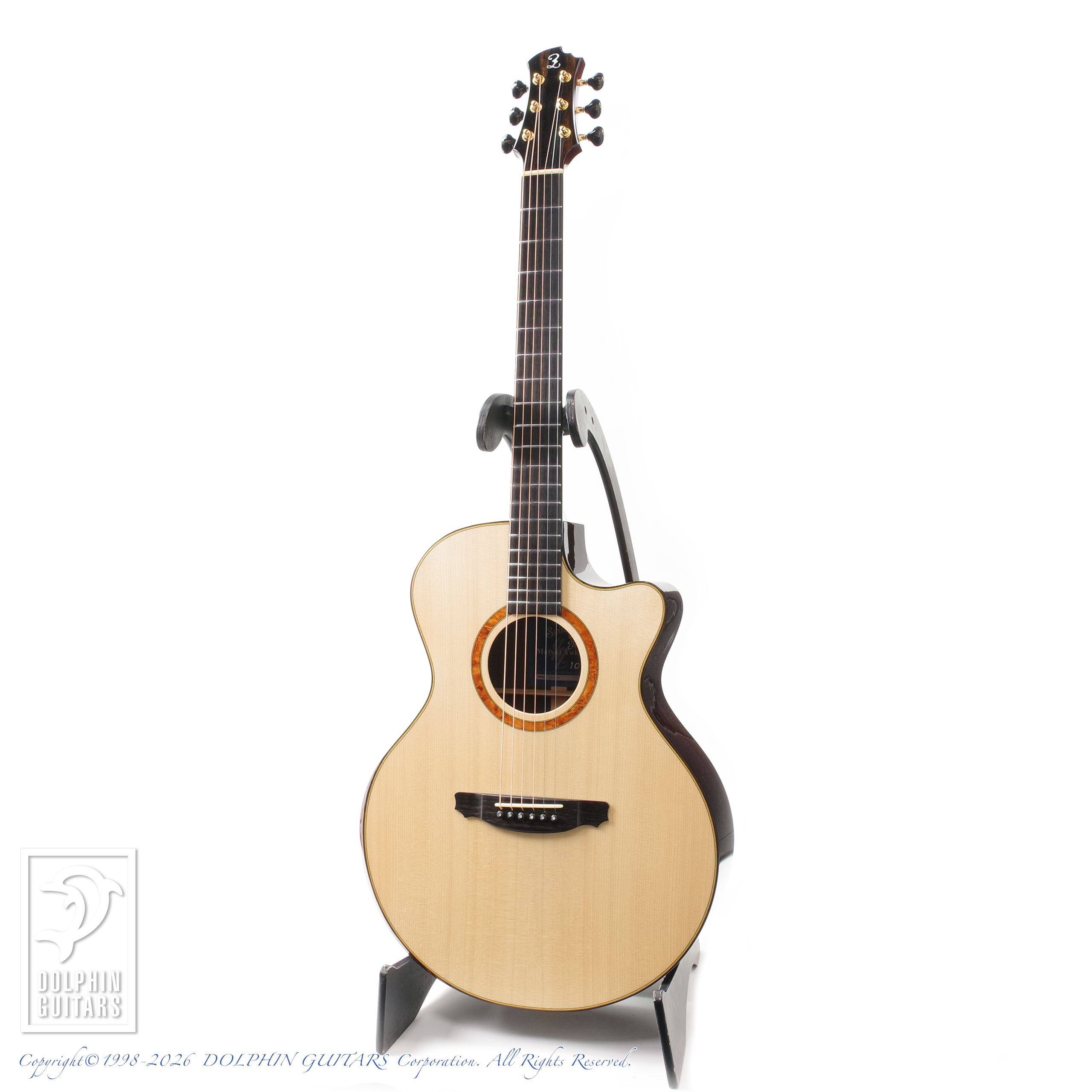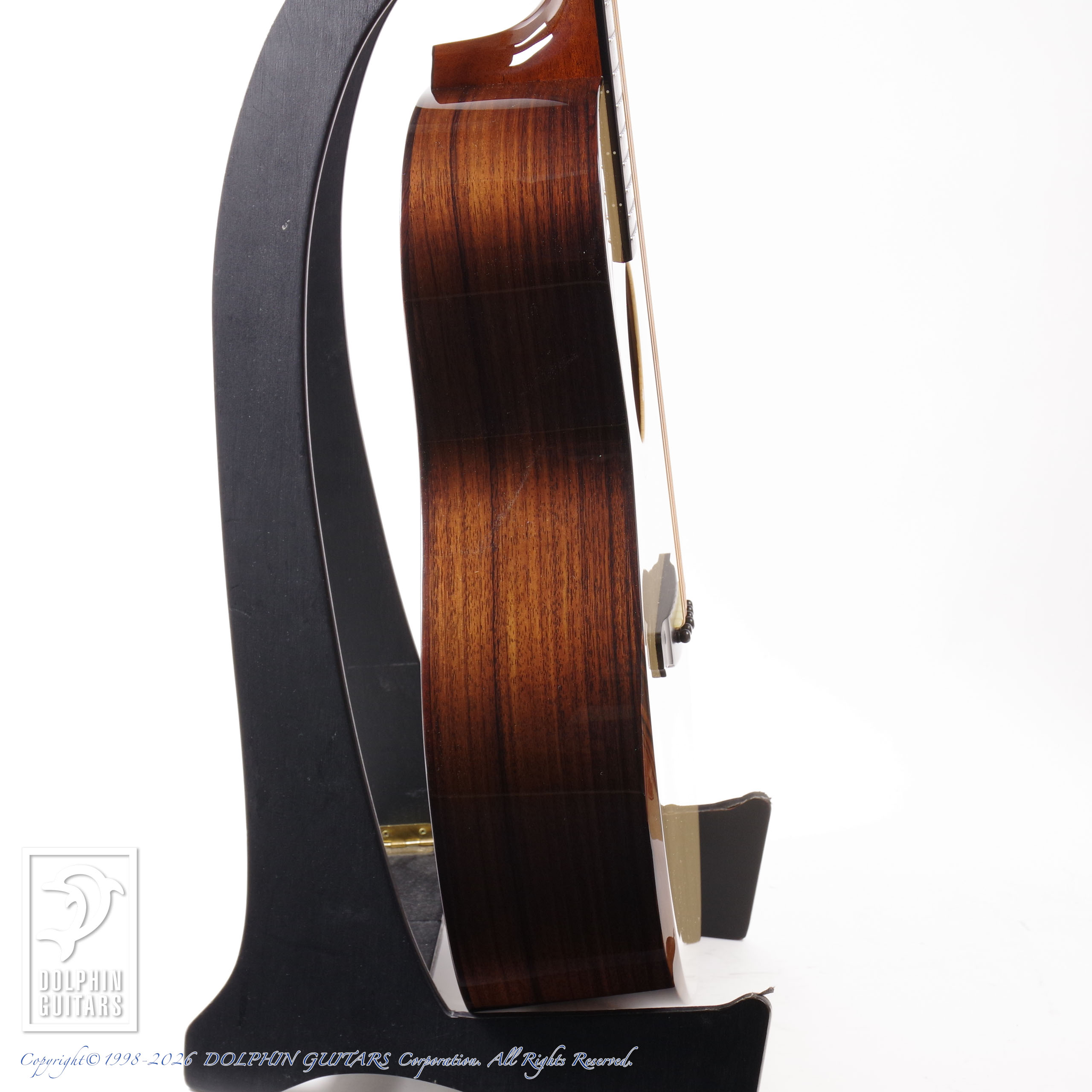 15周年という節目に特別なギターが欲しいという想いをカタチにしていただきました。使用材はインディアン・ローズウッド+ルッツ・スプルースとオーンドックスながらも、バック&サイドはできる限り薄いブラウン系でとこだわった選定をさせていただきました。ボディー・シェイプは前シグネチャーと同様ながら、ヘッド、ブリッジ形状は僕自身がデザインしたオリジナル・シェイプに変更してもらい、より特別なギターになりました。もちろんロゼッタやバインディングなど細かな装飾も全て僕が決めた特別仕様のシグネチャーモデルです。