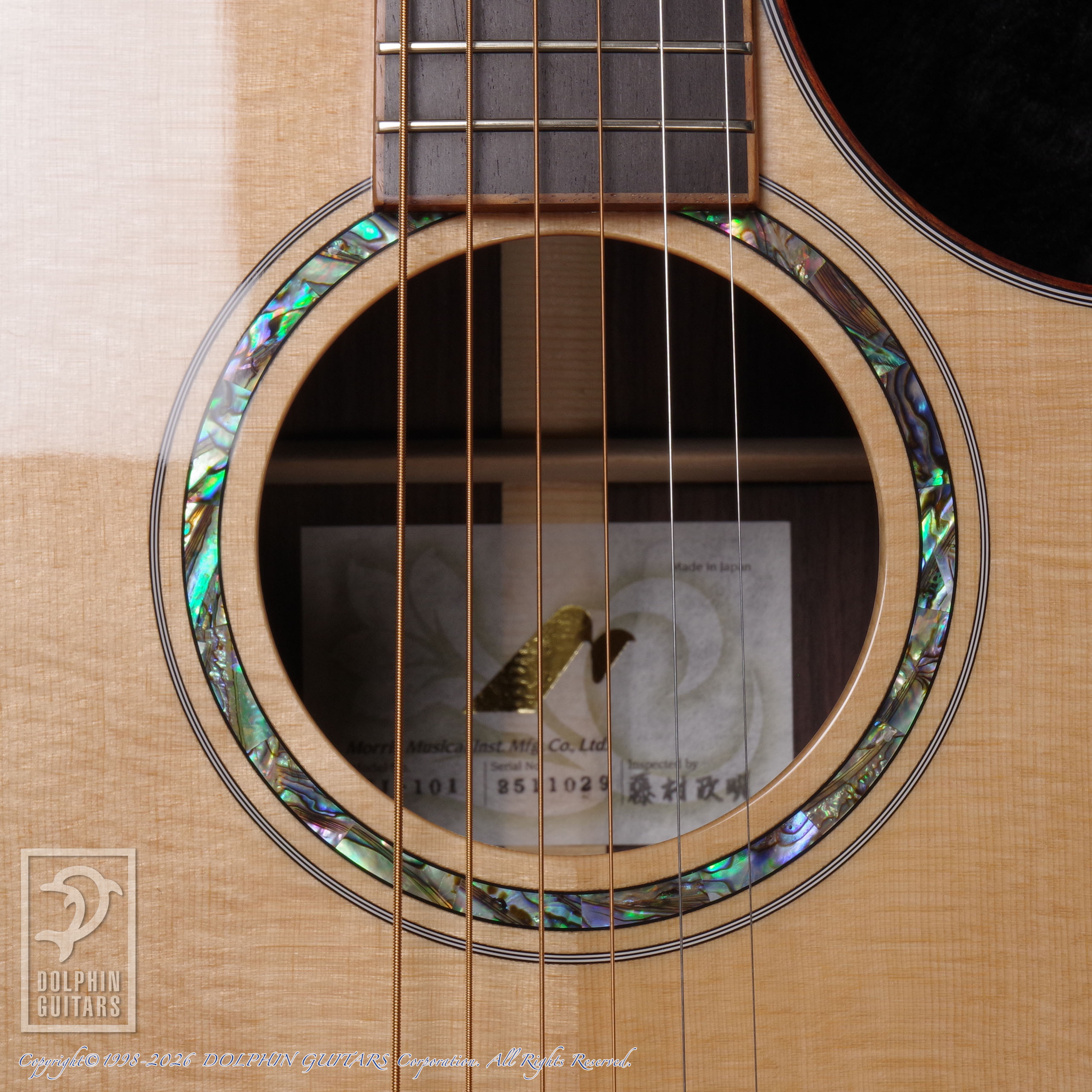 セミジャンボサイズは、通常のドレッドノートやジャンボサイズよりもわずかに薄いボディサイズが採用されていますが、そのスピード感がありながらも迫力が損なわれないサウンドは、このボディサイズならではの響き。重量感のある低音とタイトさが、絶妙なバランスで混ざり合うのもSJサイズならでは。