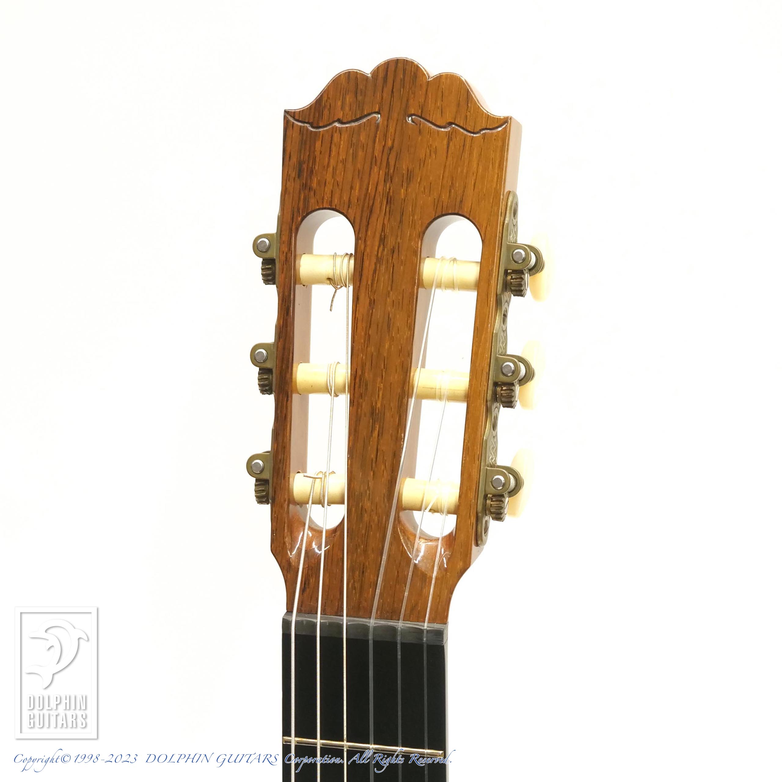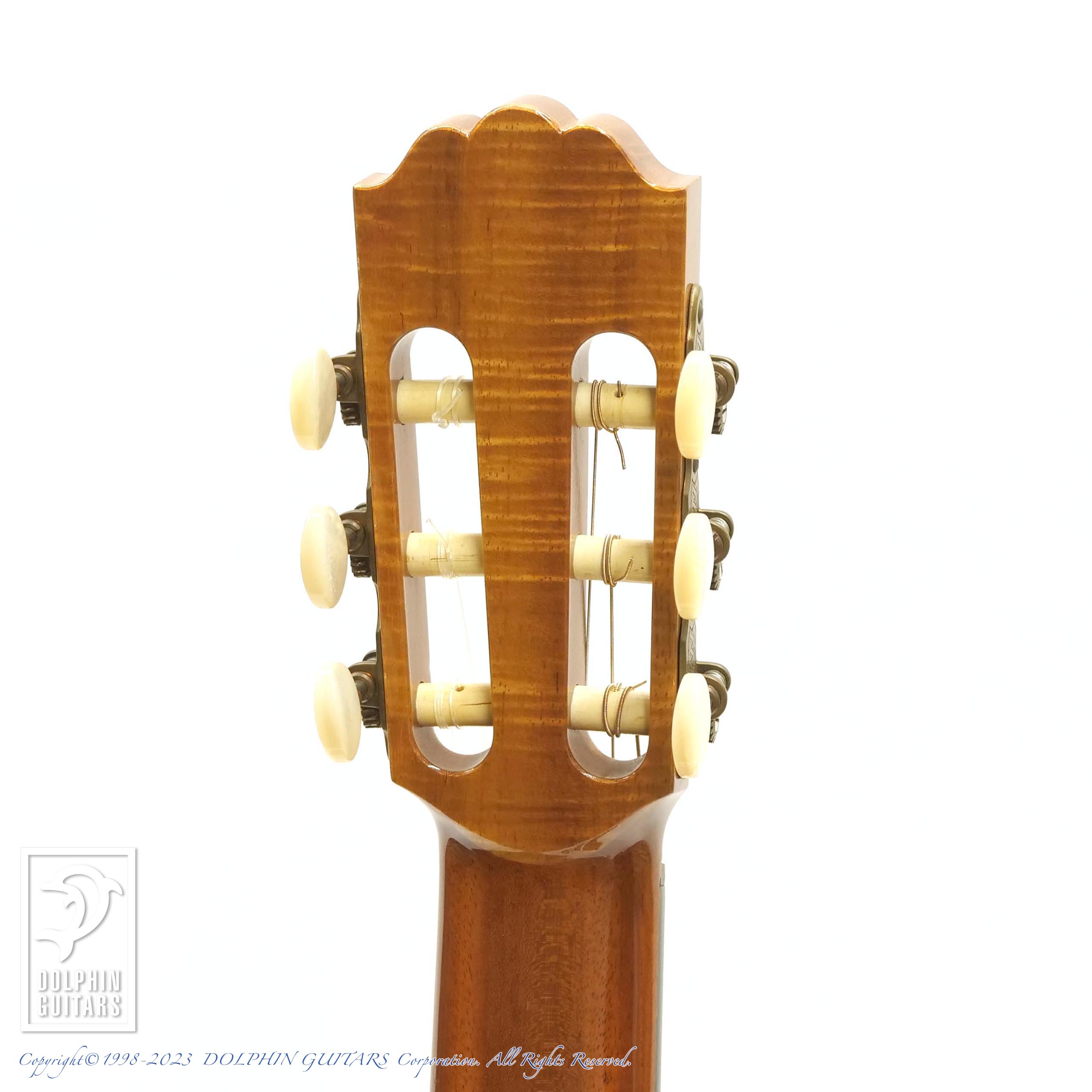 ヘッドやブリッジ形状、ラベルに見られるダヴデザインや、バインディングやロゼッタのハワイアンコア装飾など、この当時からJAMES GOODALLのアイデンティティを随所に感じられます。