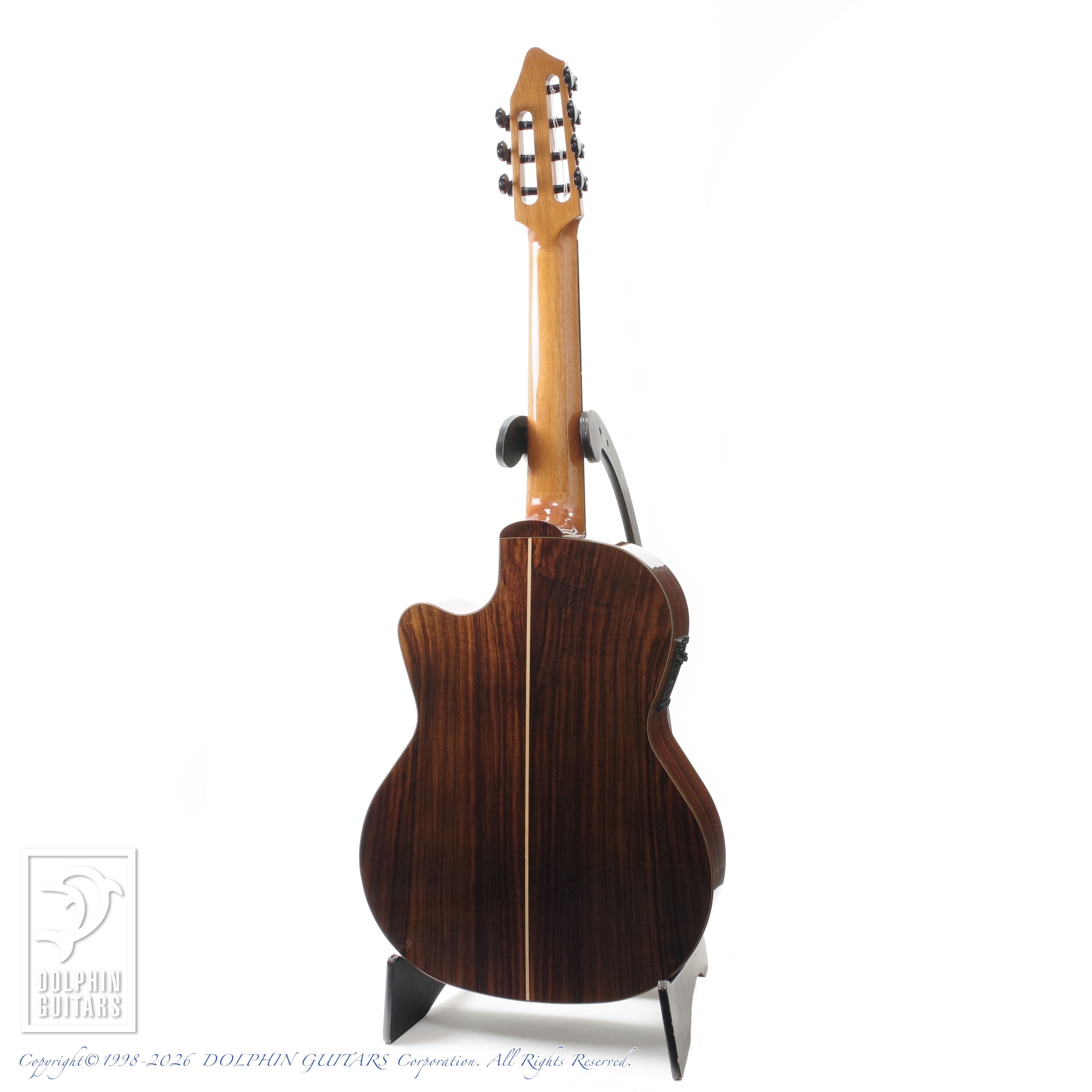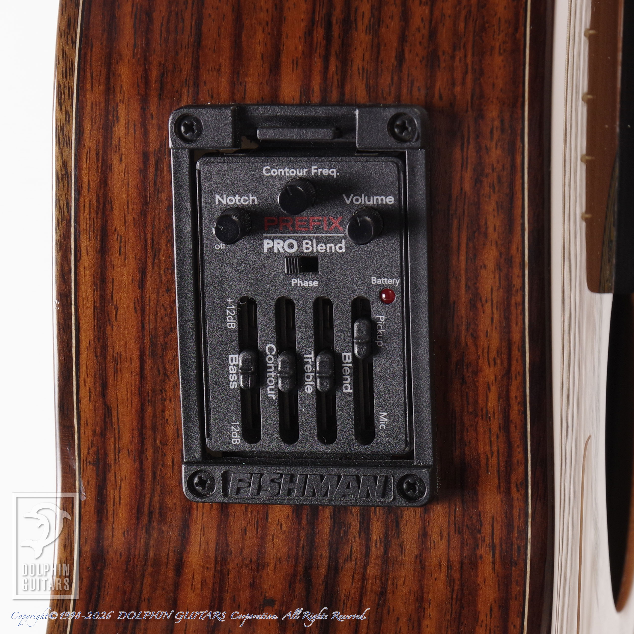 ピックアップにはフィッシュマン社製Prefix Pro Blendを搭載し、アンダーサドルPUとコンデンサーマイクを備え、リアルでパワーのあるナイロン弦サウンドを出力。PUとマイクのブレンドやイコライザーなど、手元でのコントロールも可能な本格的なPUシステムです。