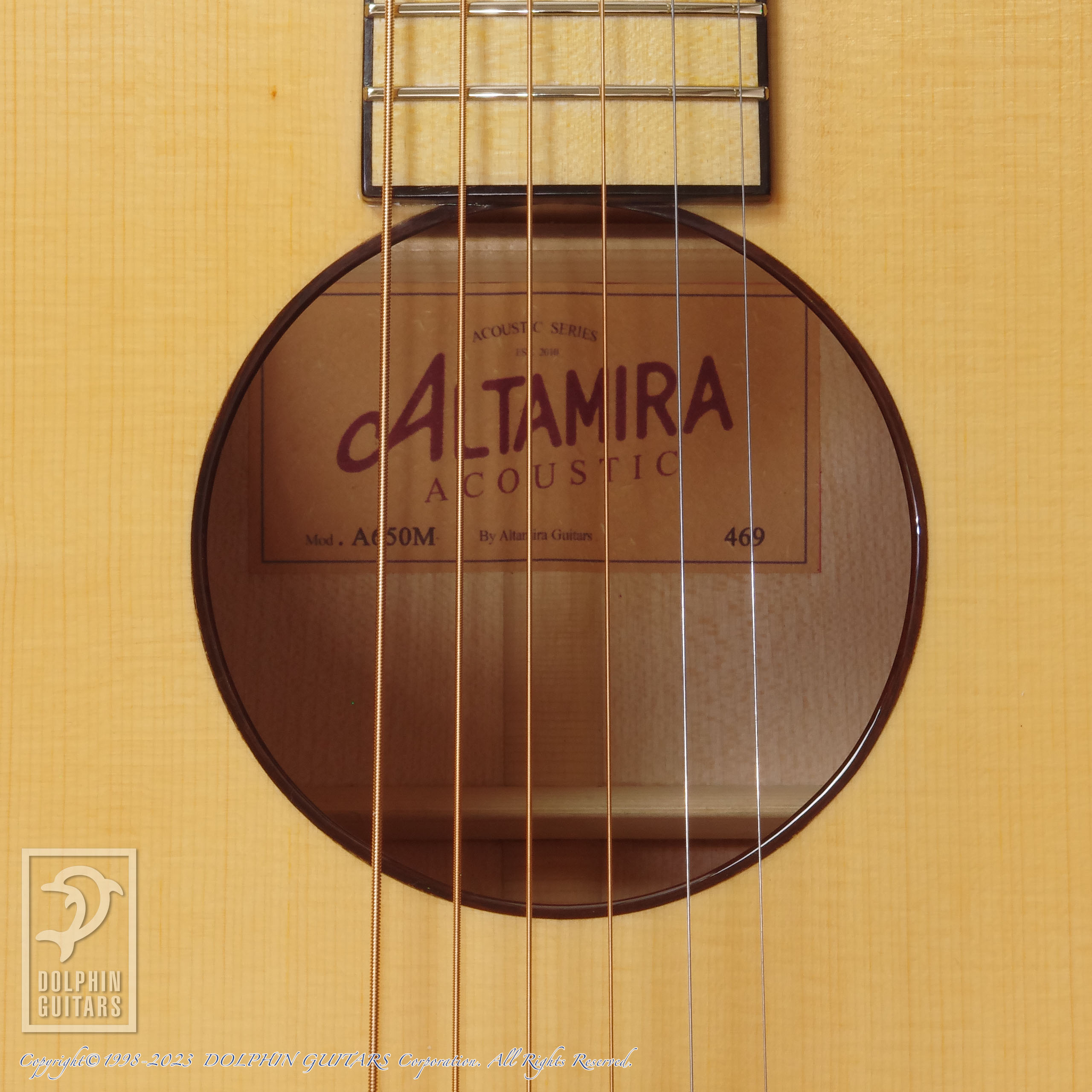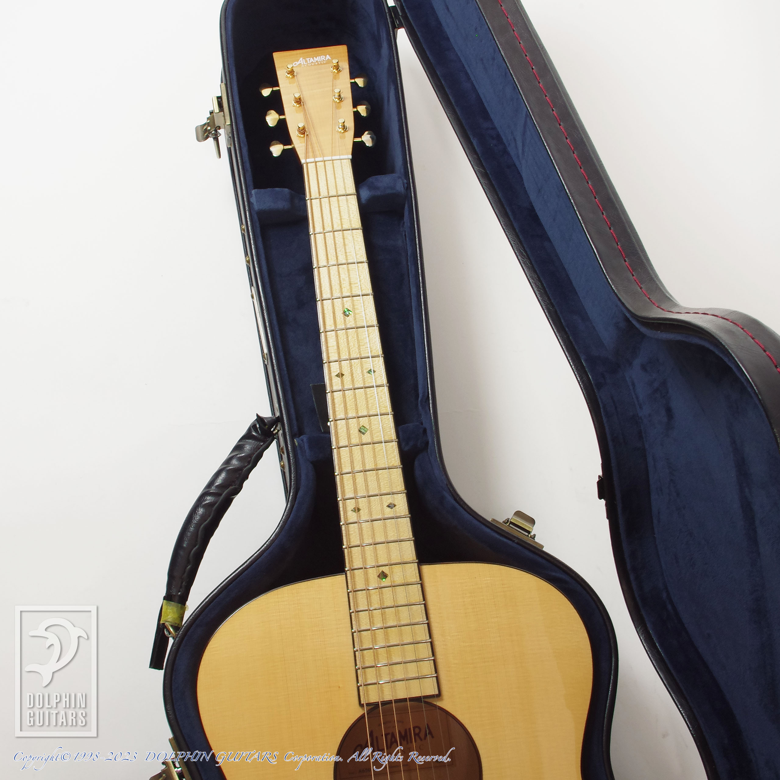 クラシックやフラメンコ、ジプシーギターを主として製作しているAltamira Guitars。本器はレアな鉄弦モデルA650をベースに、サイド&バックや指板にはメイプルが使用されたカスタムモデル A650M。