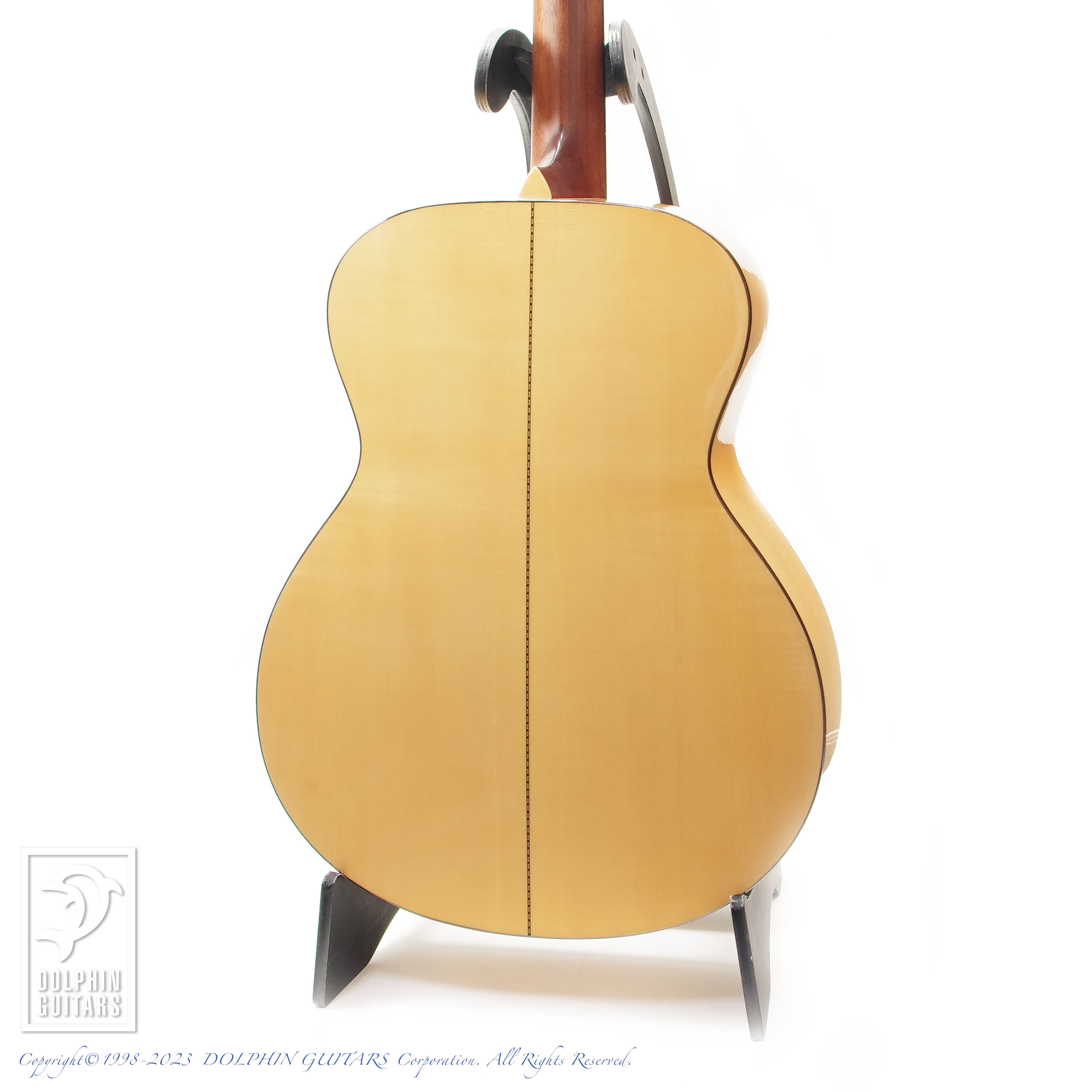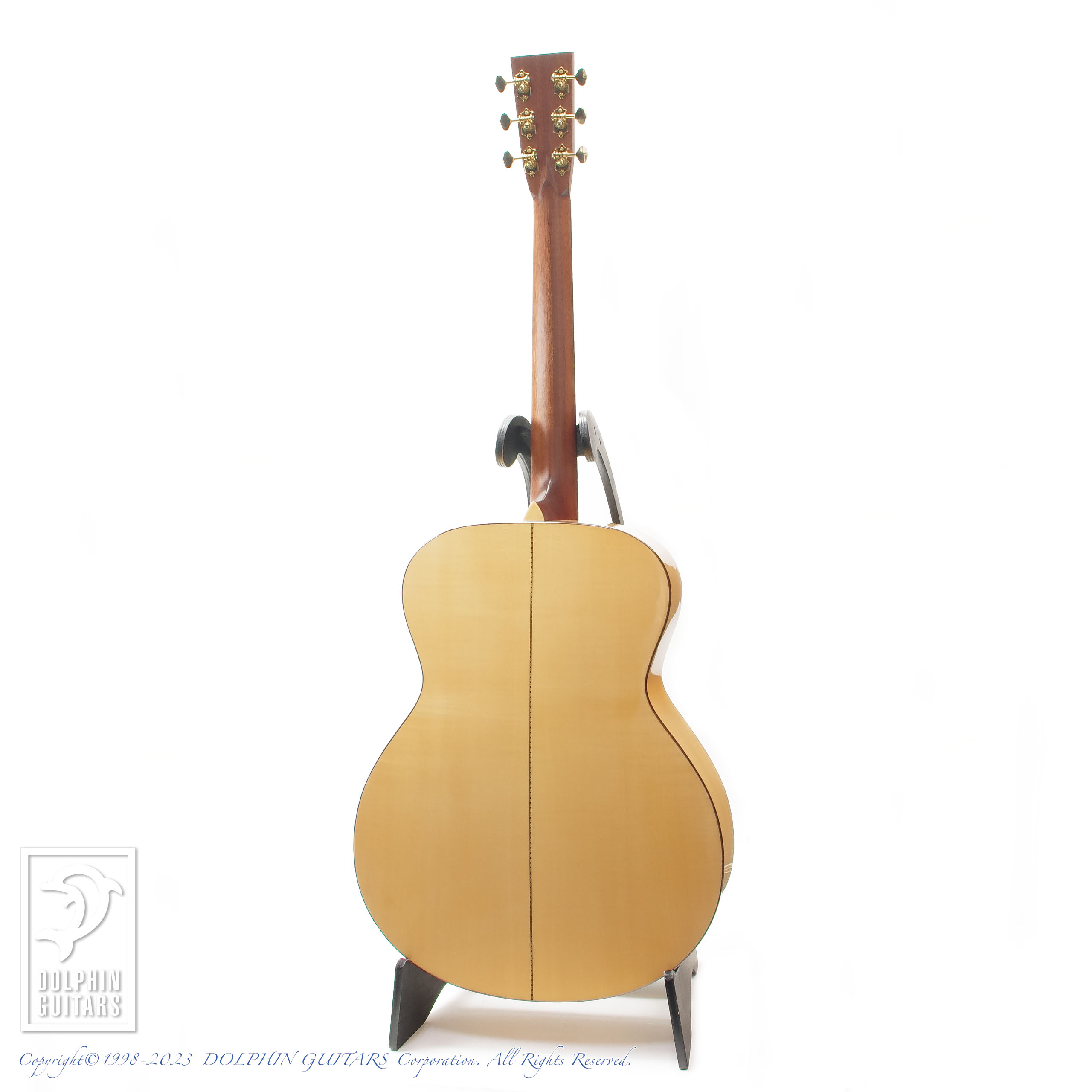 ボディサイズやスケールはOMサイズ。やや厚胴となっており、サウンドの厚みや程よく甘いトーンが印象的で、余分な硬さもない素晴らしいサウンドの個体です。この材構成でイメージするサウンドを良い意味で覆してくれるかもしれません。