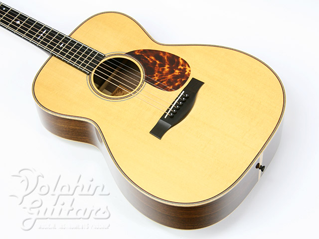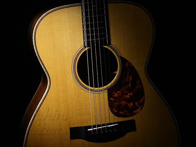 イングルマン・スプルース・トップ、インディアン・ローズウッド・サイド&バック、エボニー指板&駒、鼈甲柄ピックガード、ヘリンボーンボディートリム&ロゼッタw/レッドライン。