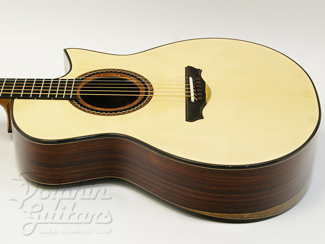 ジャーマンスプルース・トップ、アマゾンローズウッド・サイド&バック、マホガニーネック、エボニー指板、アフリカンブラックウッド駒、フローレンタインカッタウェイ、バックコンター(リブレスト)、ゴトー510糸巻き。
