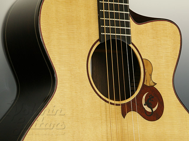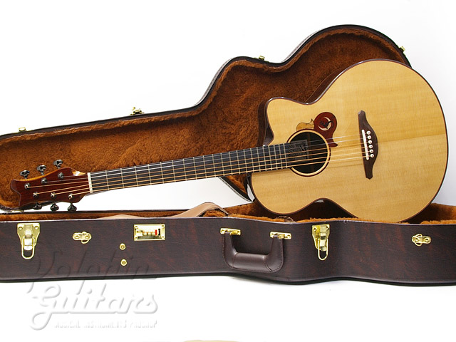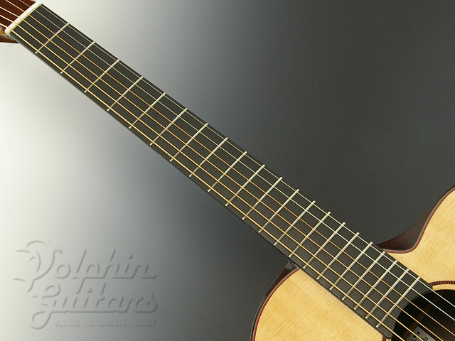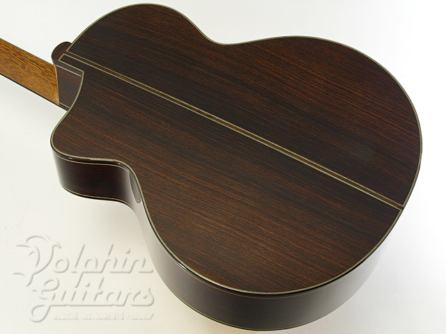 シトカスプルース・トップ、インディアンローズウッド・サイド&バック、マホガニーネック、エボニー指板&駒、ヒールレス・ネックジョイント、ベータチタニュウム製のトラスロッド、べヴェルド・カッタウェイ、スポルテッド・メイプル×パドックによるビルトイン・ピックガード。