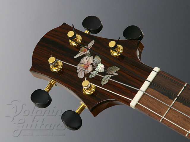 オールマホガニー・ボディ、マダガスカル・ローズ・ウッド指板&駒、ブラッドウッド・ボディバインディング、ゴトー糸巻き。