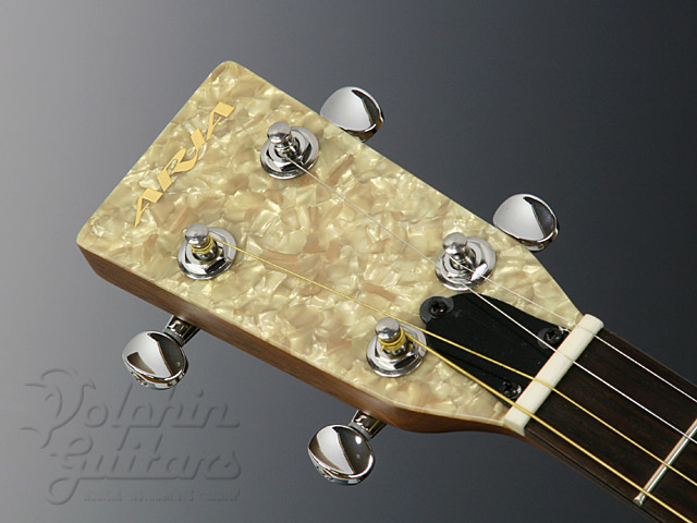 1930年代のギブソンLセンチュリーの装飾を彷彿とさせるパーロイドのヘッドプレートもとてもシブいディティールです。