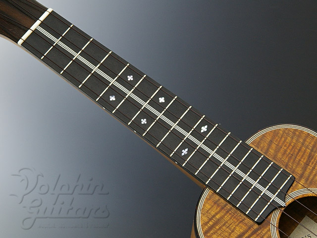 ハワイアンコアボディ、マホガニーネック、エボニー指板&駒、ボトムオーナメント&サイドオーナメント、344mmスケール、ゴトー製UTPギアペグ使用。