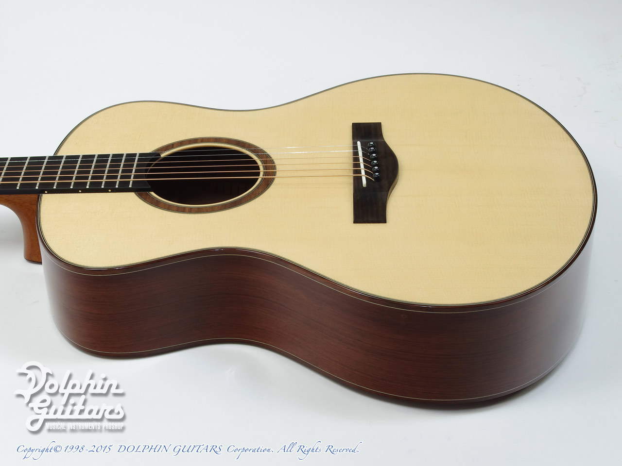 イングルマン・スプルース・トップ、ホンジュラス・ローズウッド・サイド&バック、マホガニー・ネック、エボニー指板&駒、トップ塗装セラック、ラッカー塗装サイド&バック。