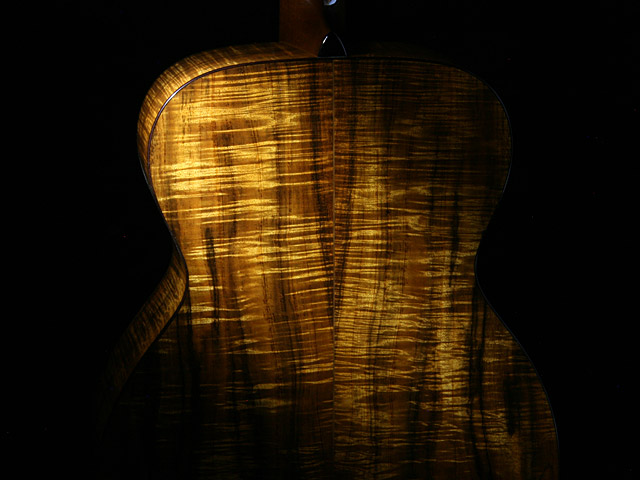 本器はボディにため息が出るほど艶めかしいハワイアンコアを使用したカスタム品、OM-1 Koa
