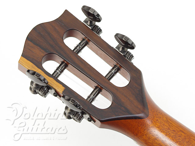 オールフレイム・マンゴーボディ、スロテッド・ヘッド、ホンジュラス・マホガニーネック、エボニー指板、マダガスカル・ローズウッド駒、コアウッド・ボディー&ネック・バインディング。GOTOH糸巻き。