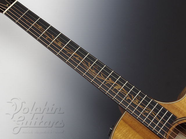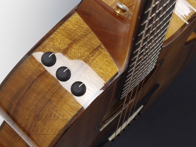ハワイアンコアウッド・ボディ、マホガニーネック、エボニー指板&駒、アバロントリム、アバロンロゼッタ、ベネチアンカッタウェイ、ESピックアップ・システム搭載。