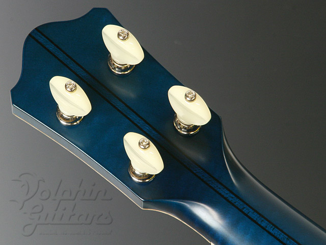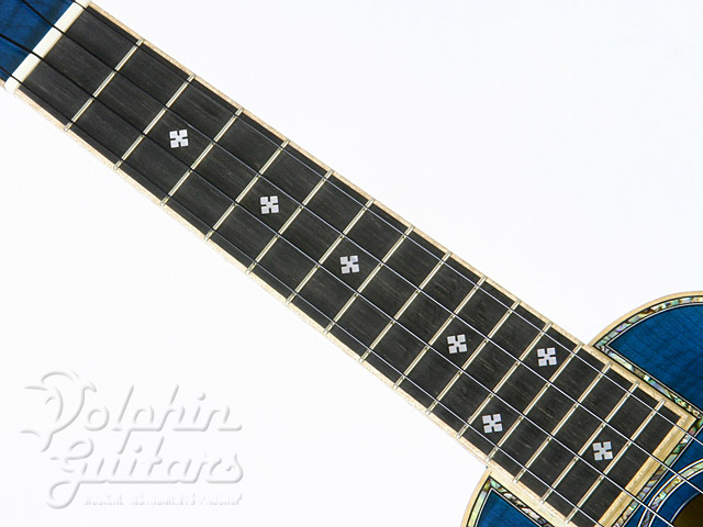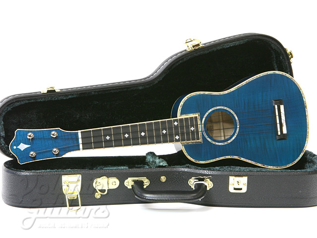 本器は当店カスタム・オーダー、シースルー・ブルーカラーのウクレレ。