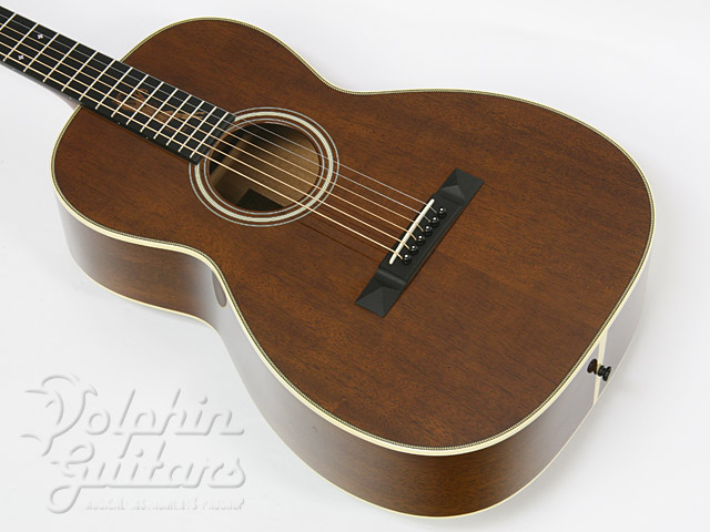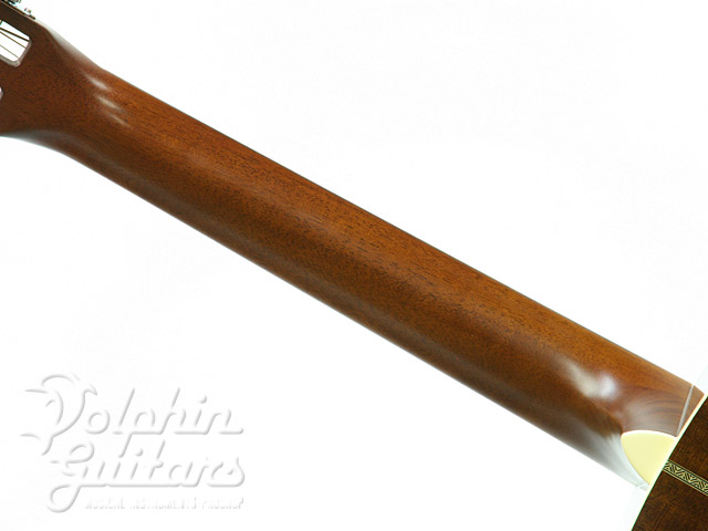 オールマホガニー・ボディ、12Fジョイント、エボニー指板&駒、ホースインレイ。
