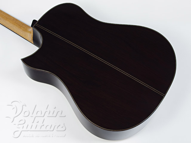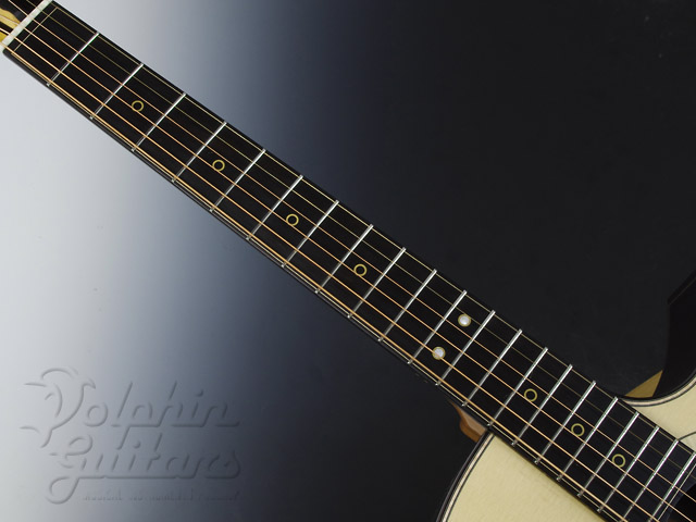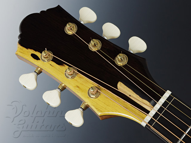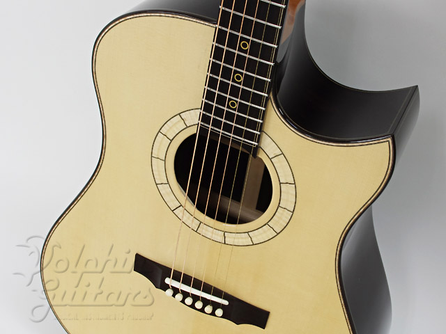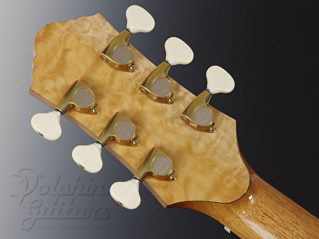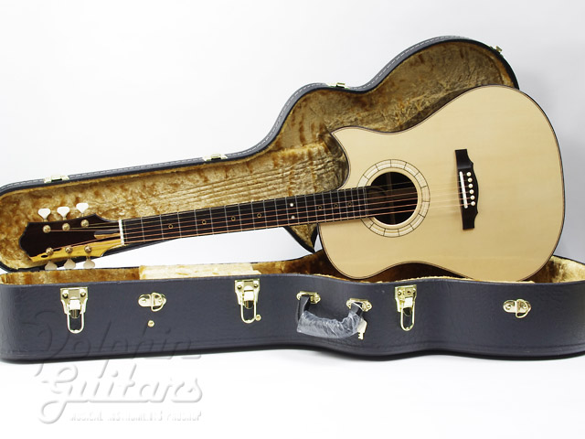 ジャーマンスプルース・トップ(ムーンウッド)、アフリカン・エボニー・サイドバック、ホンデュラスマホガニー1ピースネック、スキャロップドXブレイス、ブラックウッド・バインディング、オリジナル3Dウッドロゼッタ、ブラックウッド指板&駒、3Dカッタウェイ、ゴトー糸巻き。
