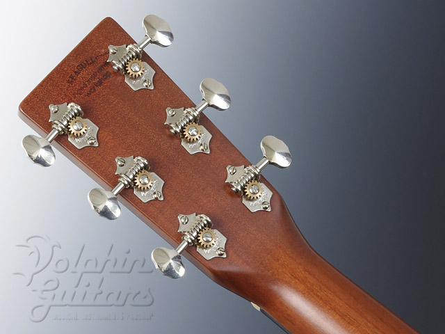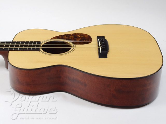 アディロンダック・スプルーストップ、ホンデュラス・マホガニーサイド&バック、フォワードシフト・スキャロップドXブレイス、ホンデュラスマホガニーネック、Tバーロッド、エボニー指板&ブリッジ、44,5mmナット幅、ロングサドル&ブリッジスペーシング57mm仕様などなど、プリウォーのスペックそのままに製作された一品。