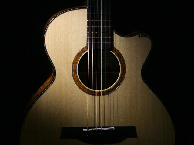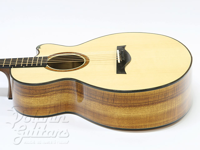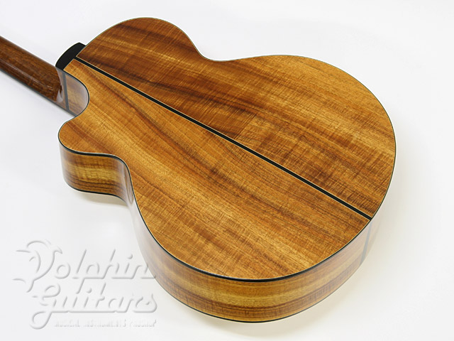 ジャーマン・スプルーストップ、ハワイアンコアS&B、キルテッド・サペリネック(アジャスタブルロッド)、エボニー指板&ブリッジ、ウッドロゼッタ、44mmナット幅、ゴトー510糸巻き仕様。