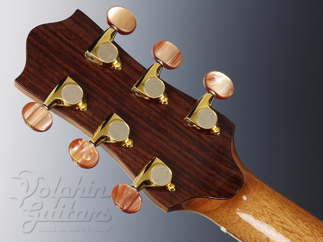 トップのアバロントリム、バックセンター飾り、新ヘッド形状など、洗礼されたデザインが目を惹くモダンなカスタムギター。